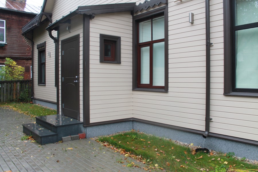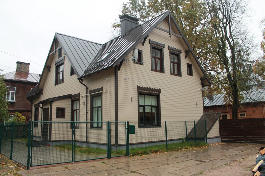 Completely reconstructed wooden house next to the unique Kalnciems quarter in Riga, which is a legacy of the wooden architecture of Latvia.