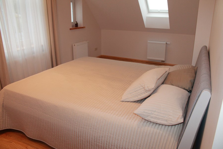The apartment occupies the entire second floor of the house, has its own entrance and its staircase.