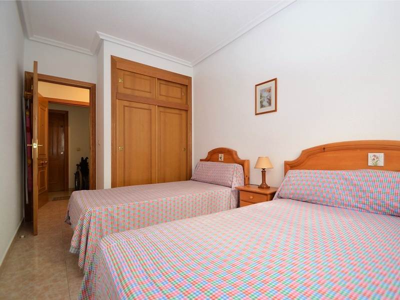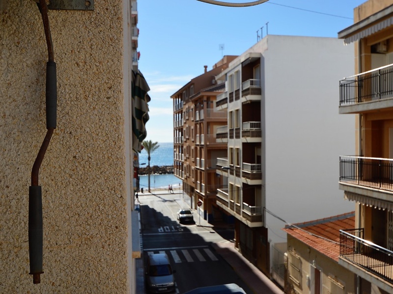 Flat for sale in Torrevieja, on the second line in 100 meters from the beach of Playa del Cura. The apartment occupies the corner of the first floor of the building. It has two bedrooms, a large living room with an american kitchen, one bathroom, and a terrace with a side sea views. Very bright rooms with large windows, all overlooking the street. The apartment was renovated 2 years ago and is in immaculate condition. Sold with all furniture and household appliances, ready to move in any time. The building itself is also very well maintained, with an elevator and a common terrace. The most convenient location. All kinds of services nearby. Ideal for living throughout the year or spending holidays, enjoying the sun, the beach and Mediterranean kitchen.