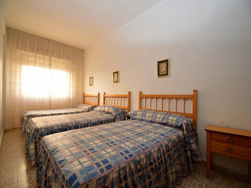 Квартира на продажу в Торревьехе, расположена на второй линии от моря, всего в 100 метрах от пляжа Кала дель Палангре. Квартира располагает 109 квадратными метрами построенной площади, разделенной между тремя большими спальнями, просторной гостиной, одной ванной комнатой, отдельной кухней и очень большой террасой с выходом на неё из гостиной и из кухни. Имеется вся необходимая мебель и техника - все в очень хорошем состоянии. Квартира очень светлая, со всеми окнами на улицу, а также очень свежая даже в самые жаркие месяцы лета, благодаря перекрестной вентиляции из-за ее двойной ориентации с террасой и окнами одной спальни, обращенными к северу, и окнами двух других спален, обращенными на юг. Квартира расположена на третьем этаже пятиэтажного здания с лифтом. Район предлагает широкий спектр всех видов сервиса и услуг. Всего в нескольких минутах ходьбы находятся два самые знаменитые пляжи Торревьехи — Ла-Плайя-де-Лос-Локос и Ла-Плайя-дель-Кура.