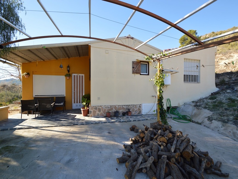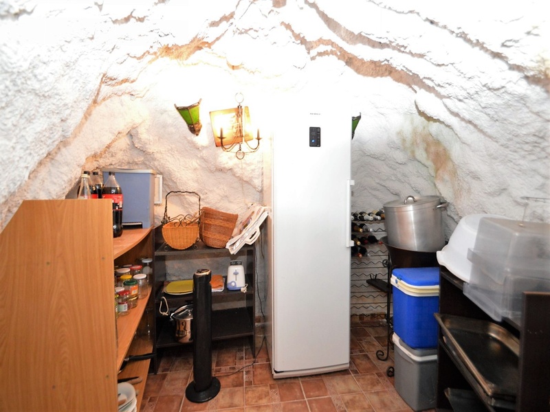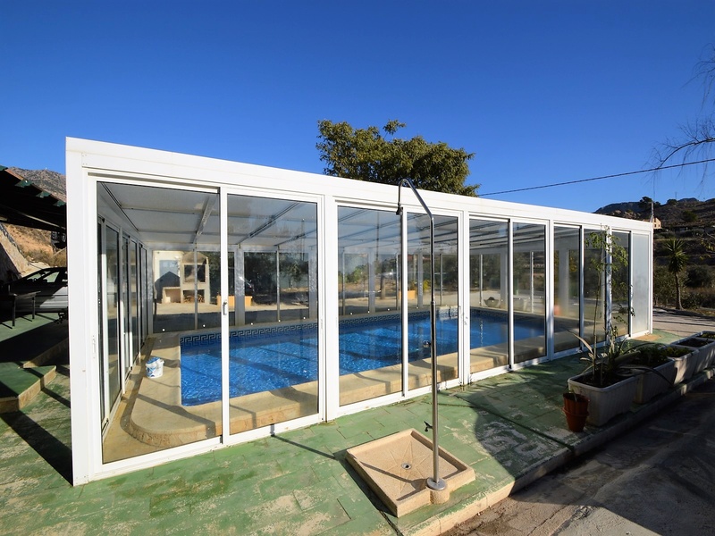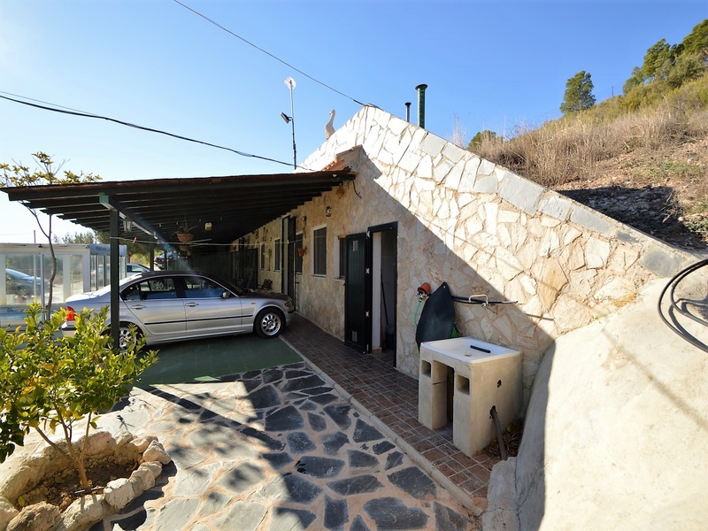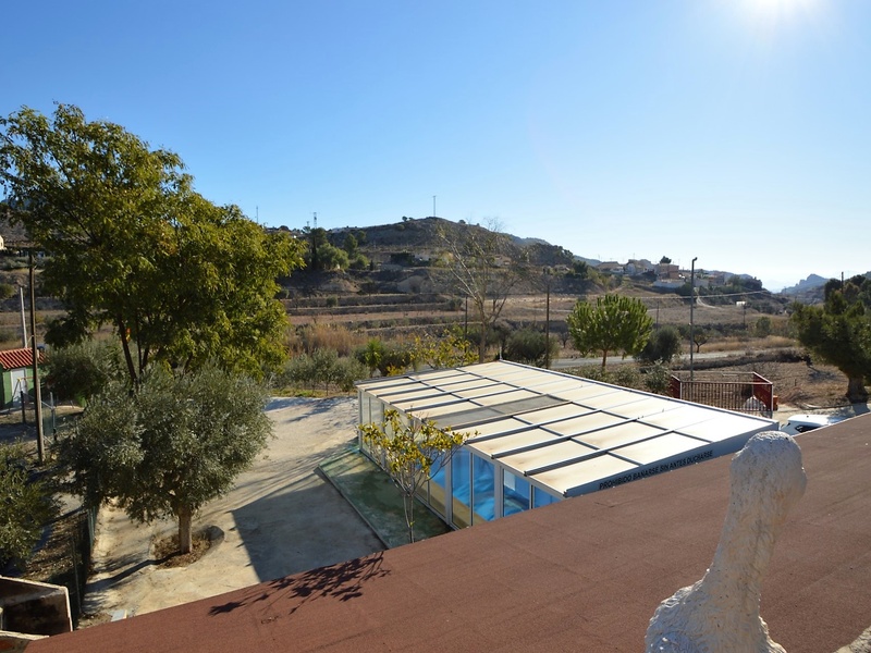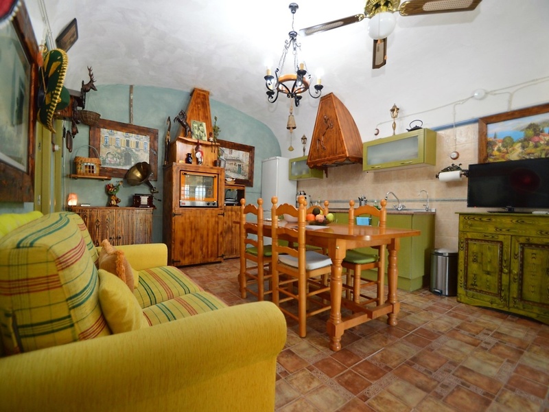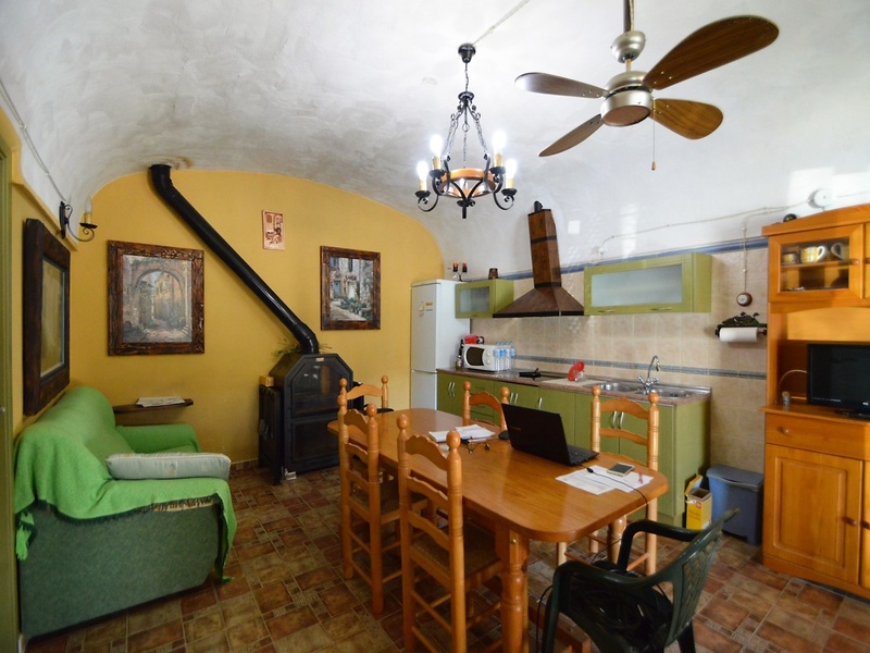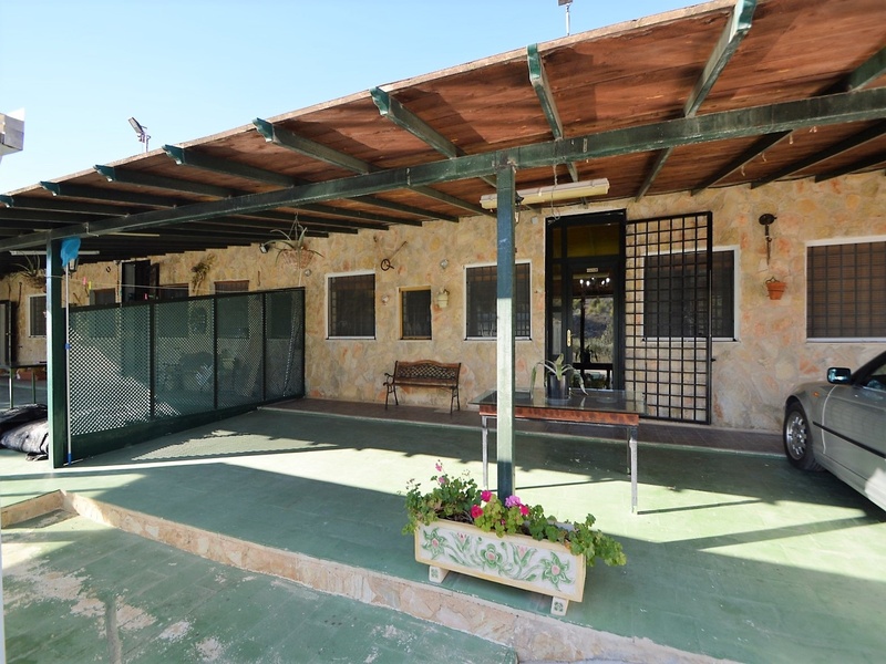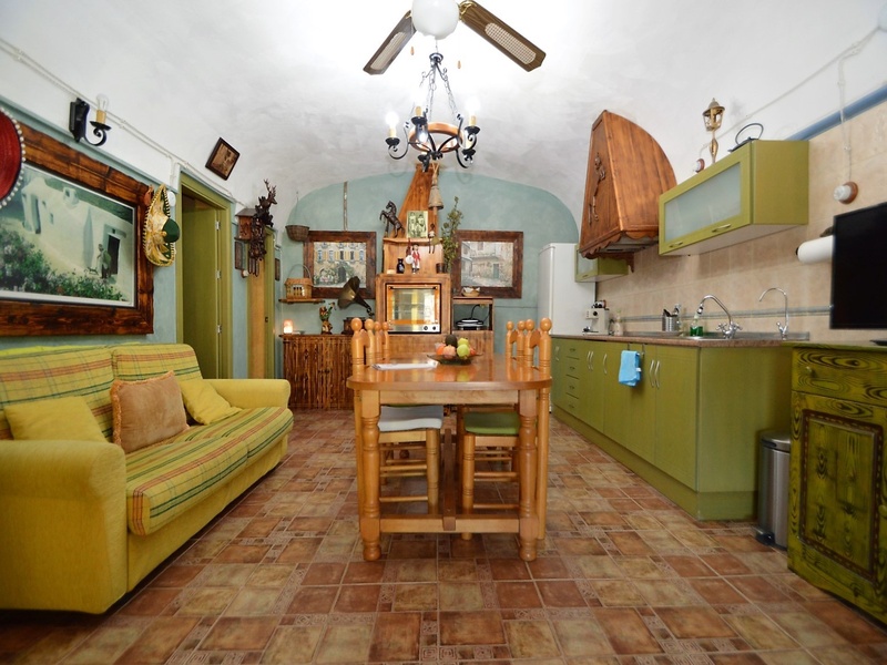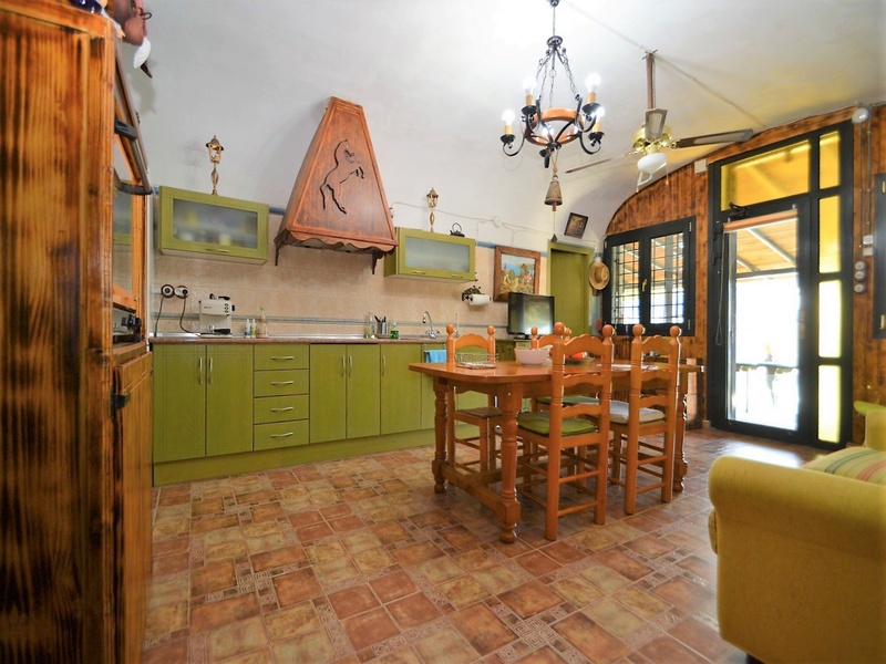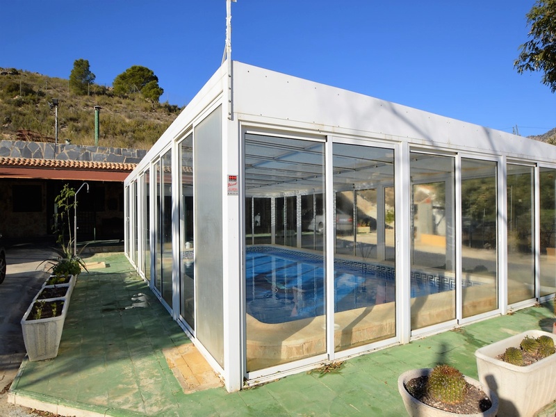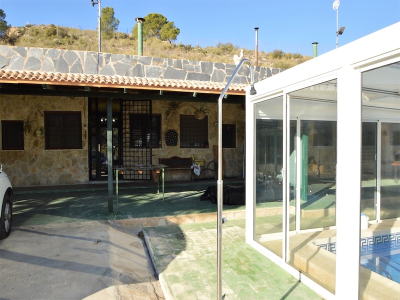 Propertie for sale in Las Casicas, in a picturesque hill area, a few minutes from the town Fortuna and a half hour drive from Murcia. The land area is 4,314 m2. There is a country house and a hill, the caves of which were used to build 2 cave houses. The total built area of ​​the 3 houses is 287 m2. The houses in the mountain have 2 bedrooms, 2 bathrooms, a living room with an open kitchen, a large terrace and a laundry room each. One of them also has a pantry in the cave and a barbecue area with a built-in stove on the terrace. The country house consists of 3 bedrooms, 1 bathroom, a living room, a kitchen, a terrace, laundry room and also has a barbecue area with dinig zone behind the house. Build in  2004. All the property is in a very good conserving condition. All three houses are furnished and decorated in a cozy rustic style, using good finishing materials, and quality furniture and household appliances. There is also an indoor swimming pool of 5x10 m, with a fully expanding roof, a garden of olive and fruit trees, a catchment with irrigation system, a small coop, etc. The property is located in a natural environment with a wonderful view of the hills and only 5 minutes from the center of the town of Fortuna, offering all kinds of services, a wide range of restaurant services and a weekly street market. In 15 minutes from Fortuna health resorts and a spa center. Just an ideal place to stay in harmony with nature and surrounded by tranquility throughout the year or spending unforgetable vacations. Also a very good option for investment as a property for rent.
