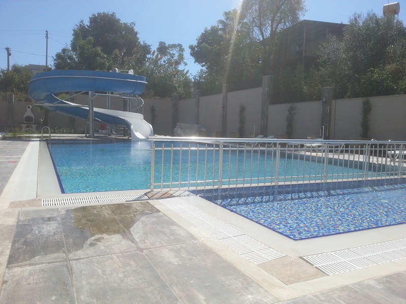 Spacious apartment with 2 bedrooms, for a large family, in Mahmutlar, near the sea and all urban infrastructure. On site: swimming pool with slide, generator, arbor for barbecue, parking, concierge and gardener. The apartment faces south-west.