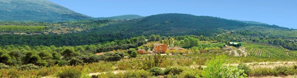 "Finca Brisuela" has an approximate extension of 170 hectares, where some 15,000 cherry trees are planted in production, and has several constructions in it. The main building is a house, type mountain Masia Alicantina, with 1,350 approximate square meters built, divided into several rooms all of them large: two rooms, library, 7 bedrooms, etc ... all fully renovated with noble qualities unbeatable as natural stones, solid woods and walls covered with fabrics of elegant drawings. It also has a house for the service or guests attached, a chapel, garden with pool and barbecue area with separate room for events.