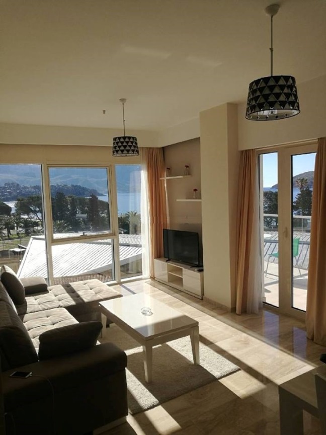 Квартира находится на 6 этаже элитного жилого комплекса, расположенном в центре города, примерно в 50 метрах от моря и набережной.