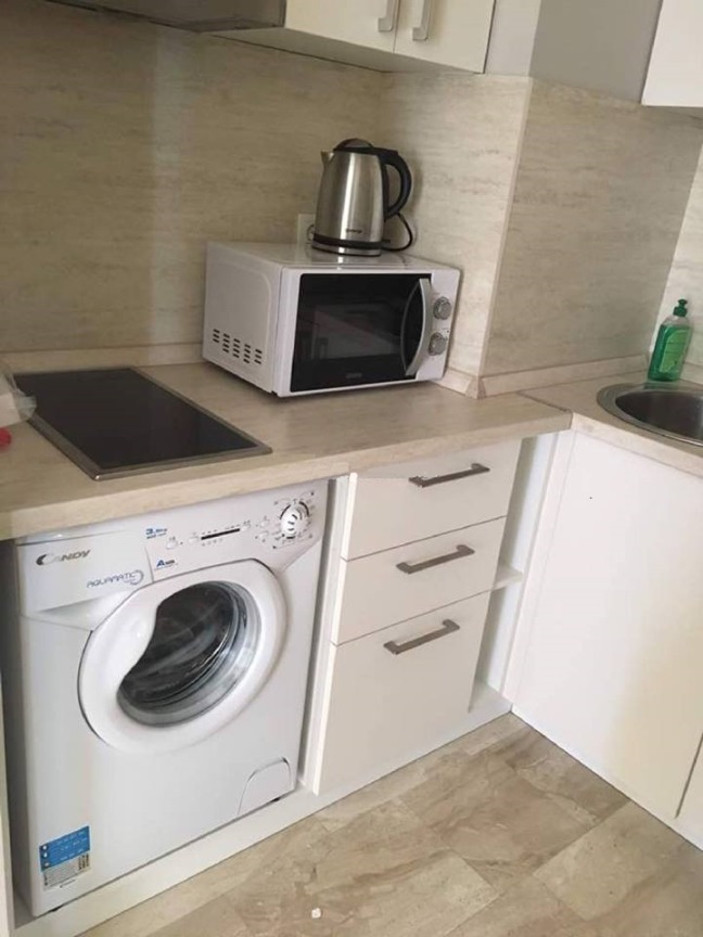 Квартира находится на 6 этаже 15-этажного здания и состоит из гостиной, столовой, полностью оснащенной кухни, спальни, ванной комнаты и террасы с видом на море и город.