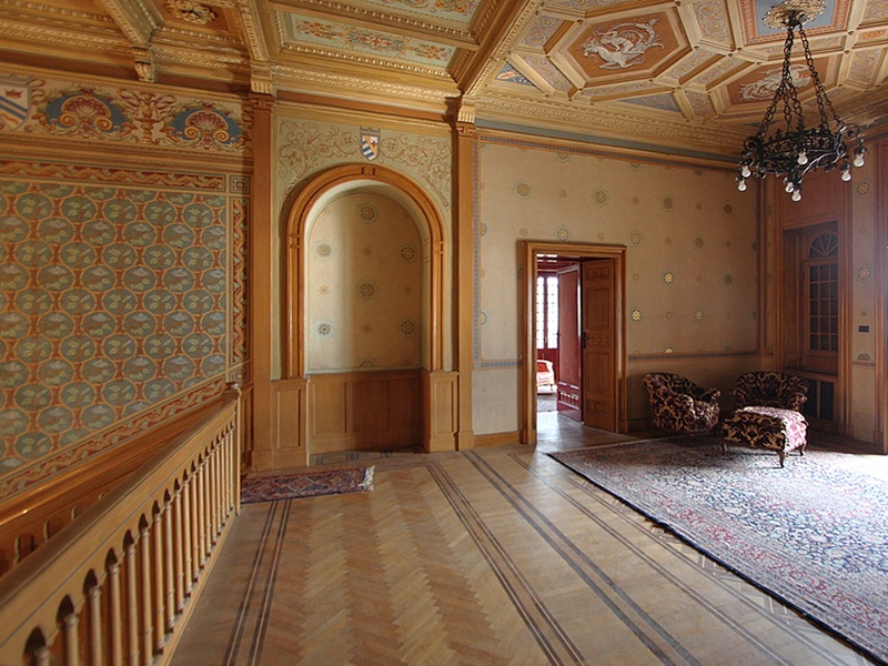 Интерьеры замка полностью сохранились со времен строительства замка, постоянно поддерживались и реставрировались на протяжении веков.