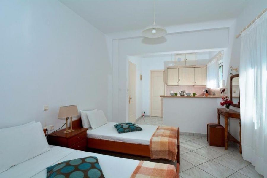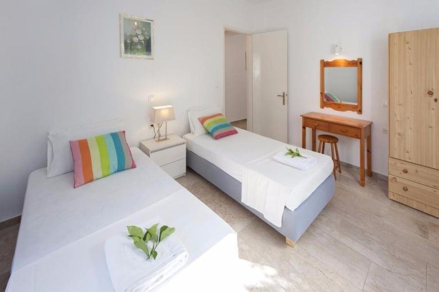 The complex has a paved garden, front and back, with a total area of 200m2, is just 100m away from the sandy beach of Agios Gordis, where every season lots of tourists around the wolrd choose to spend their holidays.