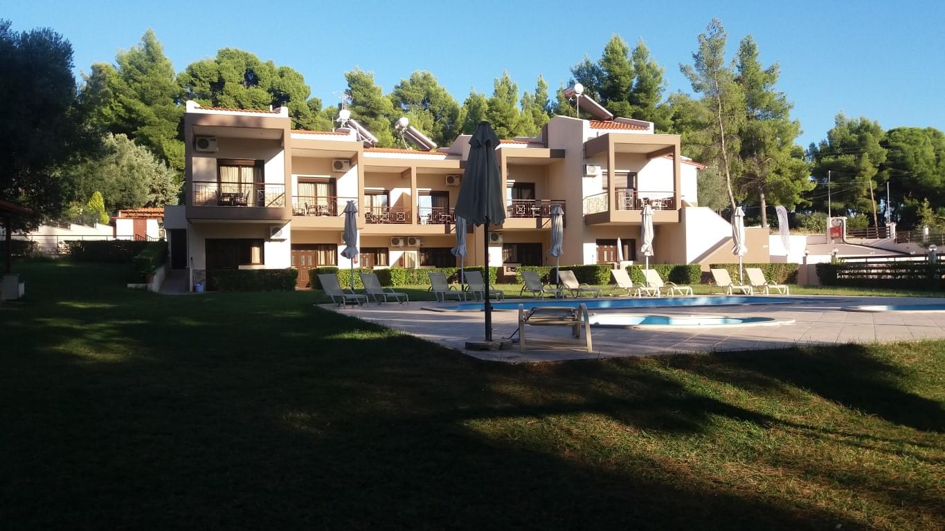 Продаётся комплекс апартаментов на Ситонии, Халкидики. Комплекс состоит из пяти меблированных квартир площадью 35 к. м каждая, пяти двухуровневых квартир по 45 кв.м и трёх трёхуровневого таунхауса, площадью 90 кв.м. Комплекс располагает собственным земельным участком площадью 2300 кв.м. На территории комплекса имеется бассейн 55 кв.м, два барбекю, кафе-бар, спортзал и паркинг на автомобилей. Также, в указанную стоимость входит соседний участок площадью 2055 кв.м, с возможностью строительства 300 кв.м жилой площади.