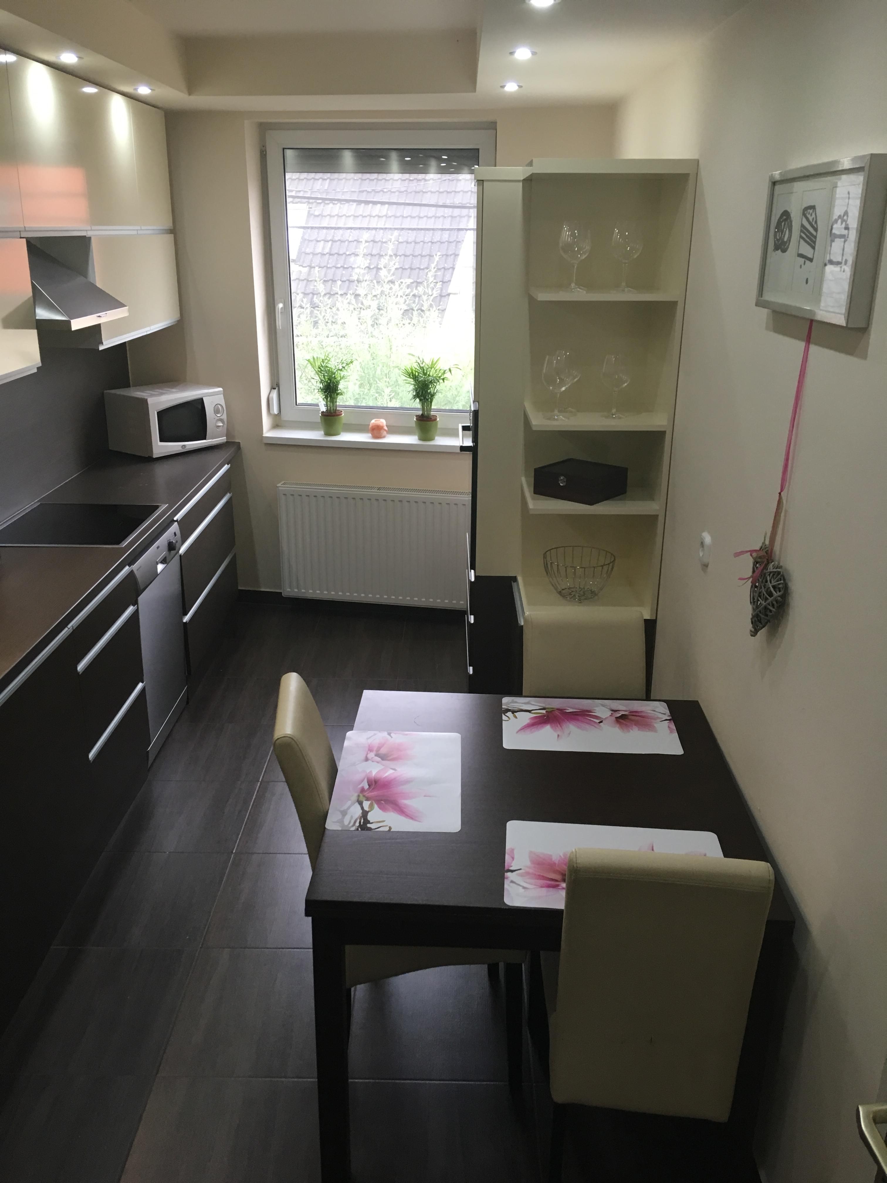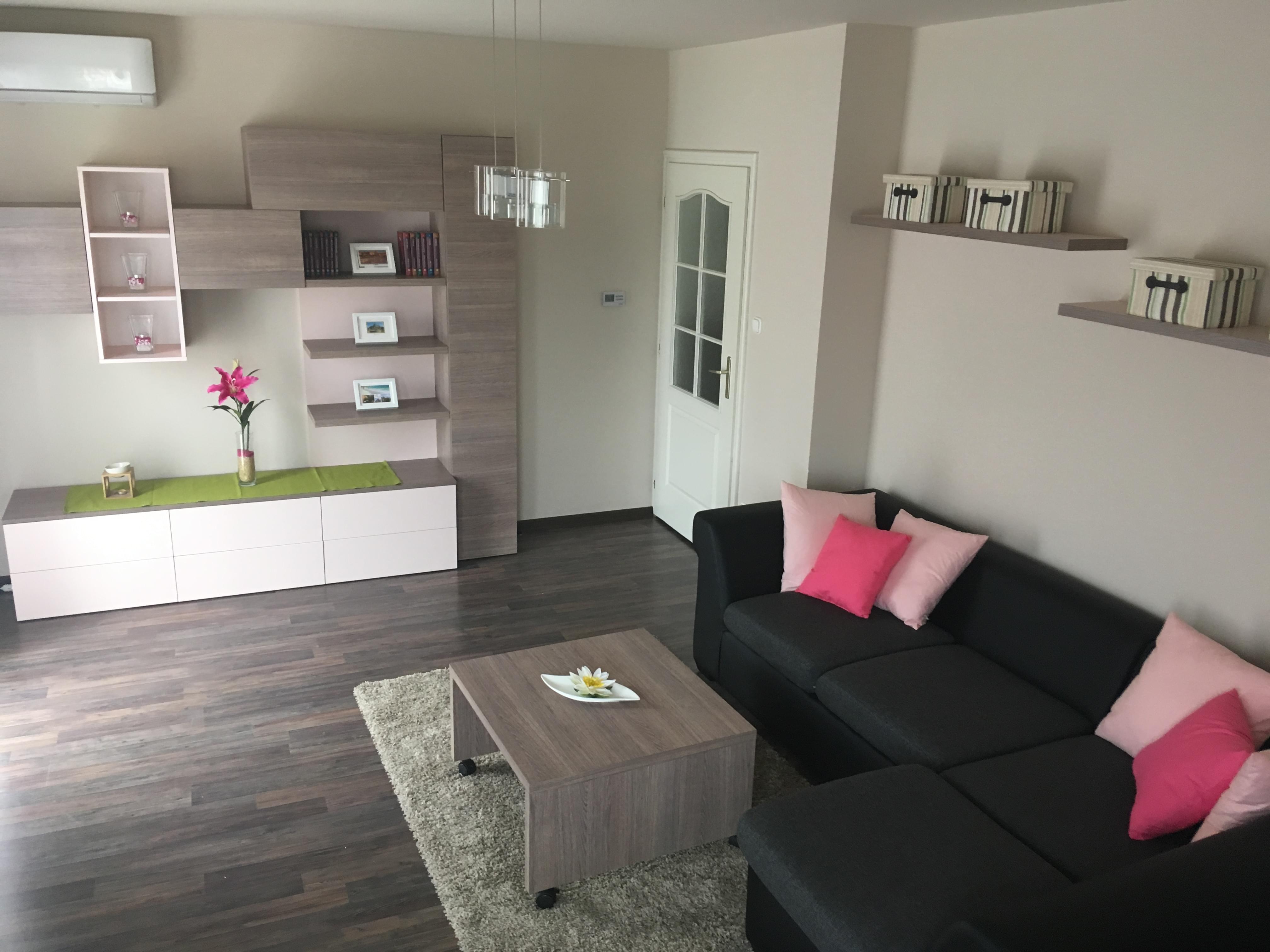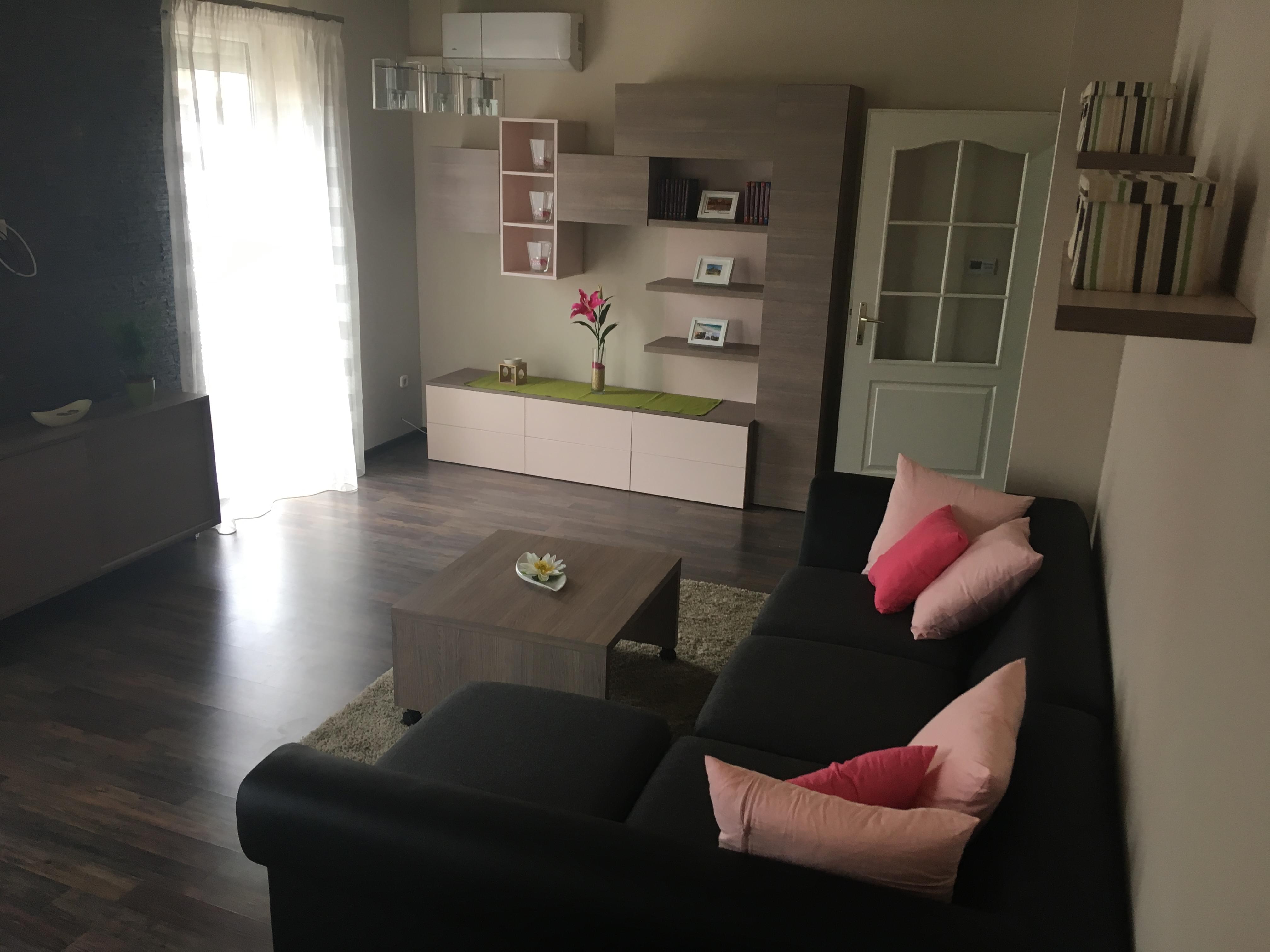 Exklusiv eingerichtete Wohnung in unmittelbarer Nähe von Györer Innenstadt zu vermieten. Die Wohnung besteht aus: Wohnküche Schlafzimmer Badezimmer mit WC und Bad Vorzimmer Balkon (9,88m2) Parkplatz im Tiefgarage Die Wohnung wird komplett möbeliert vermietet. Die moderne Einbauküche ist mit Kühl-Gefrierkombi, Mikrowelle, Backoffen und Herd ausgestattet. Das Schlafzimmer ist mit Klimaanlage ausgestattet.