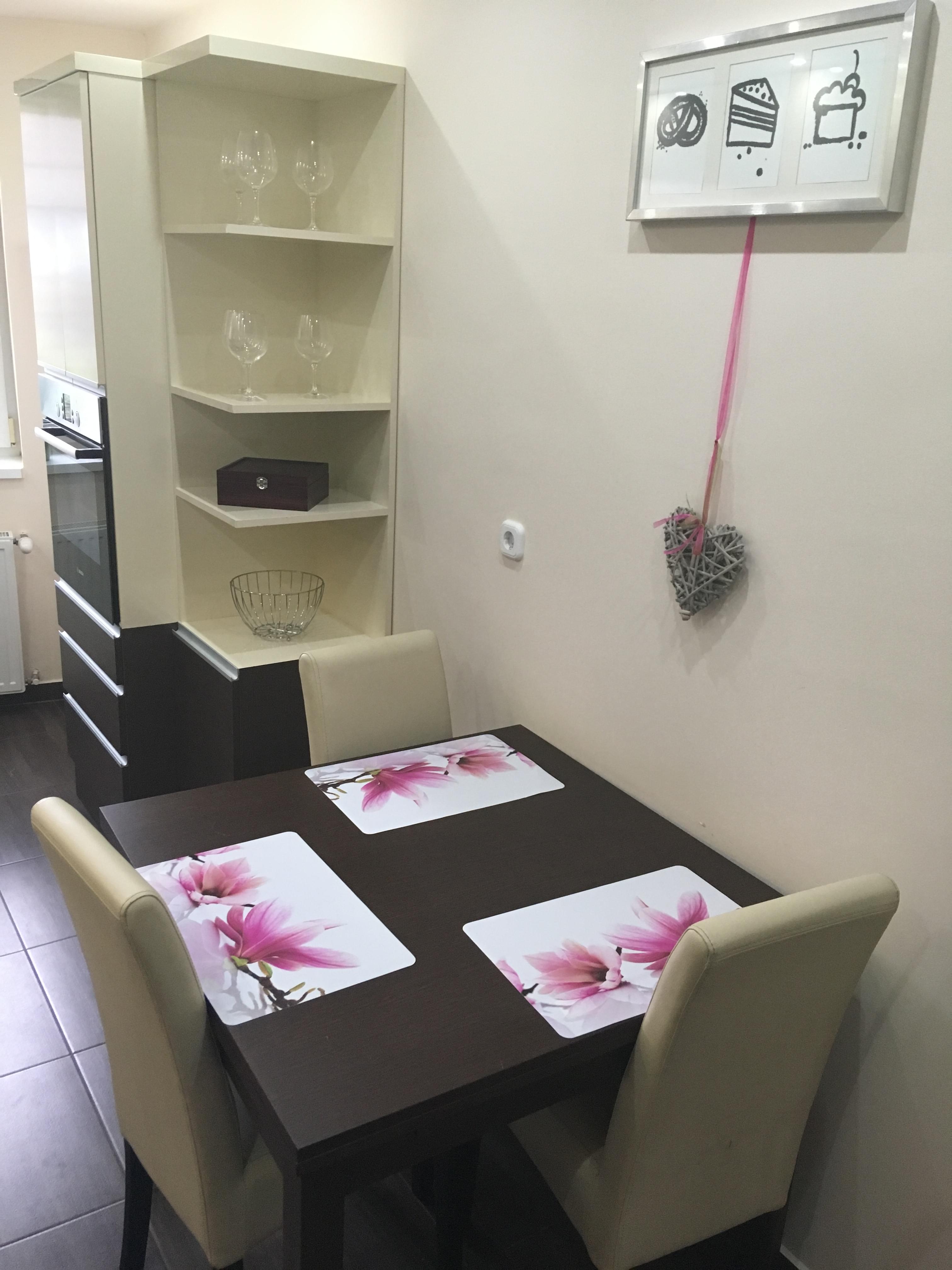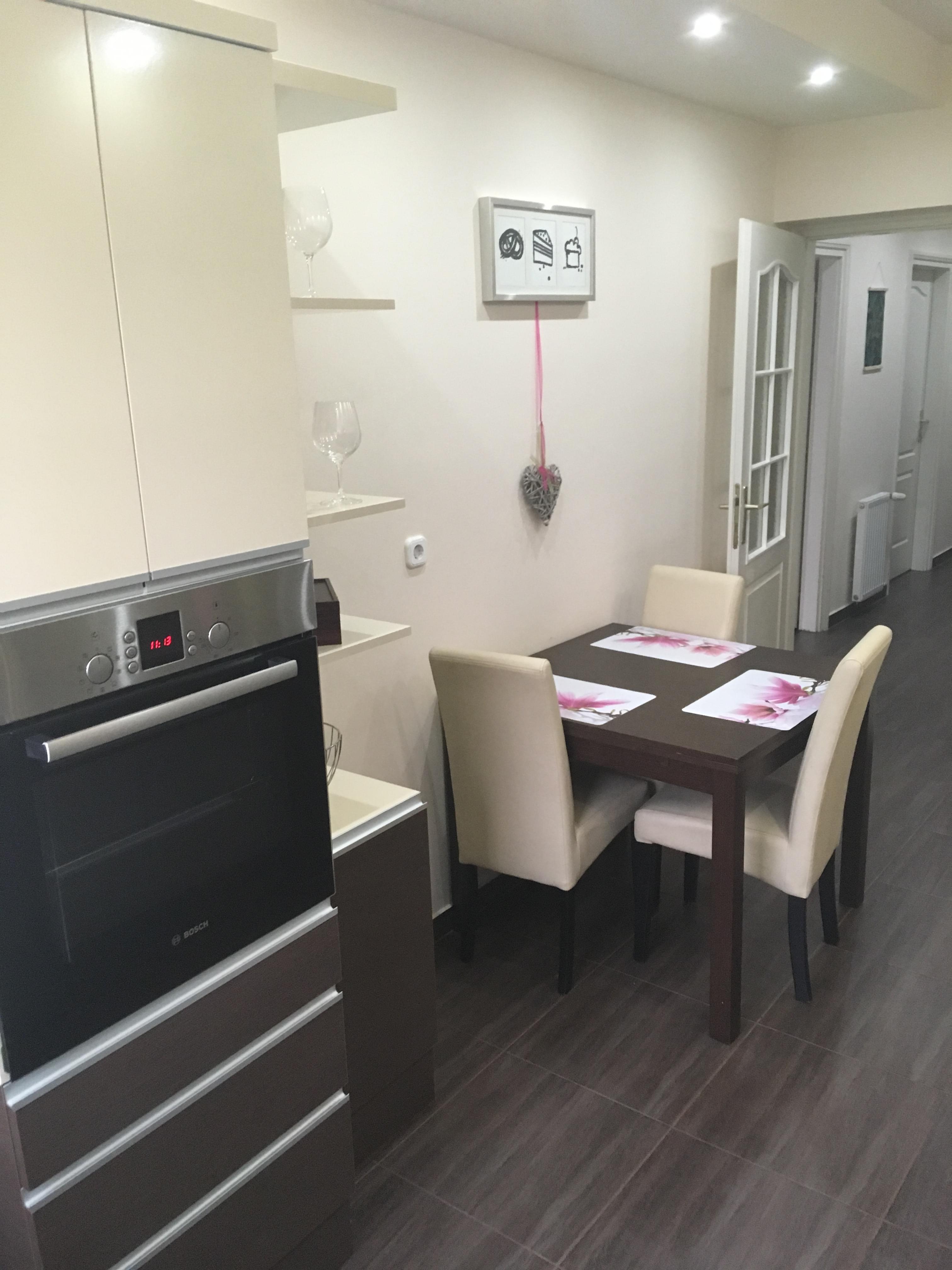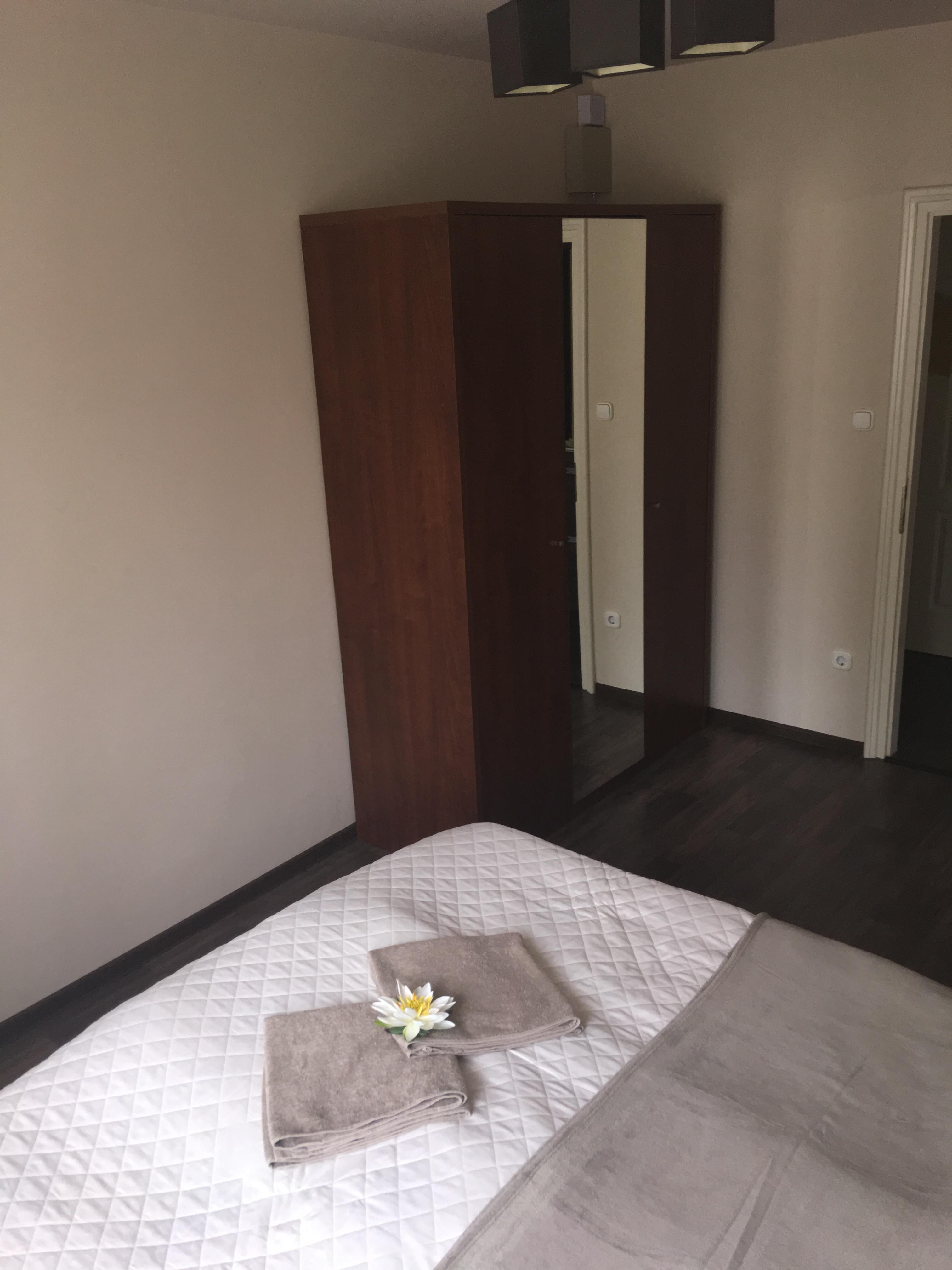 Exklusiv eingerichtete Wohnung in unmittelbarer Nähe von Györer Innenstadt zu vermieten. Die Wohnung besteht aus: Wohnküche Schlafzimmer Badezimmer mit WC und Bad Vorzimmer Balkon (9,88m2) Parkplatz im Tiefgarage Die Wohnung wird komplett möbeliert vermietet. Die moderne Einbauküche ist mit Kühl-Gefrierkombi, Mikrowelle, Backoffen und Herd ausgestattet. Das Schlafzimmer ist mit Klimaanlage ausgestattet.