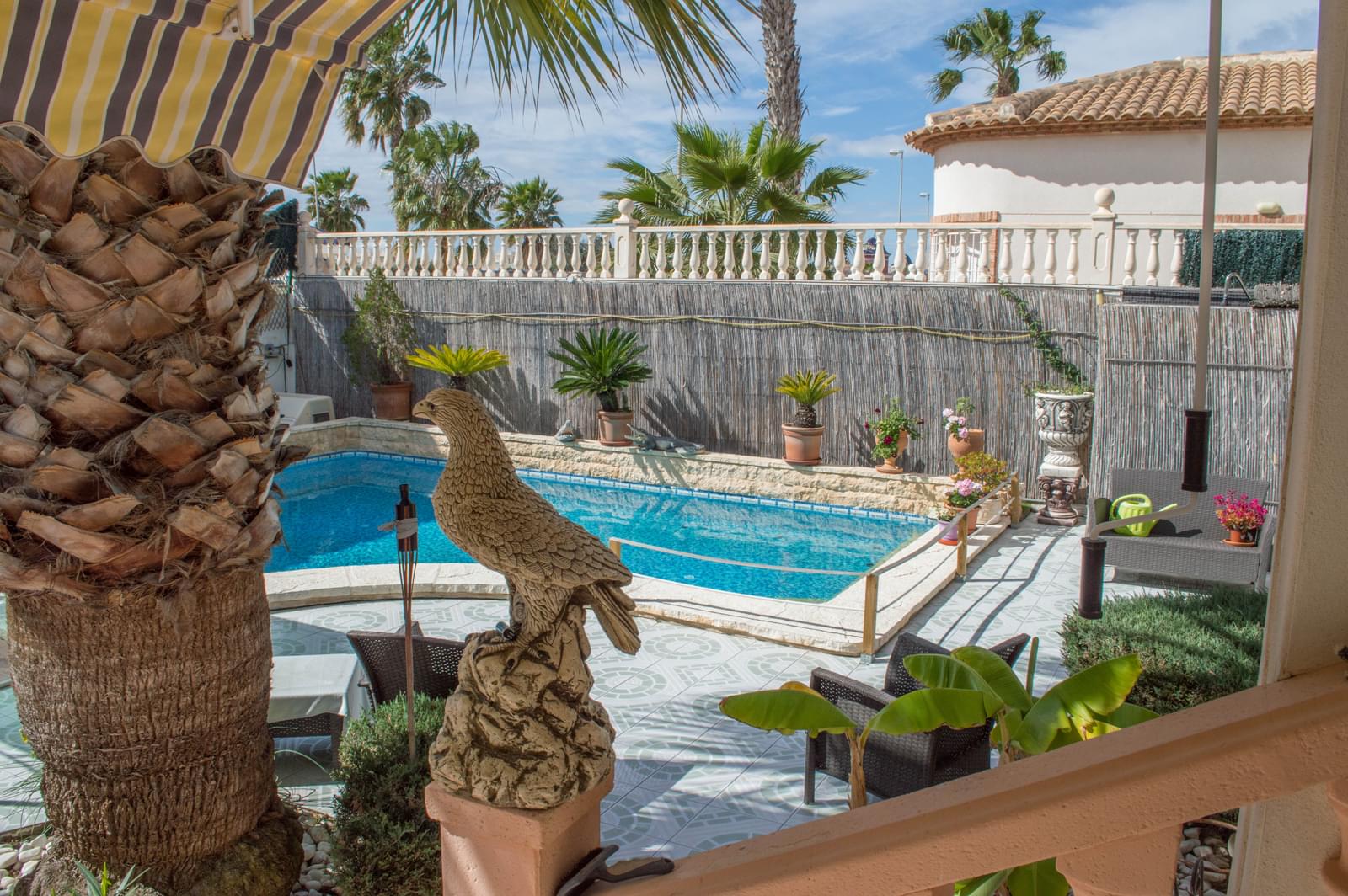 For sell in good area of ciudad Quesada a wonderful villa!! It is located close to the supermarkets and area to relax. It has 3 bedrooms with fitted wardrobes, 2 full bathrooms, a living-dining room, kitchen, fireplace, barbecue, storage room, plaza to park with a roof (it has space for two cars), large terrace, garden, swimming pool, covered terrace and other is not, armoured entrance door, cctv cameras that keep the information 3 months, windows, greenhouse , floor radiant heating, air conditioning, gas, heating, and more things .
