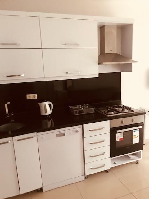 The apartment is equipped with all necessary set of things for comfortable living, including appliances and bedding.