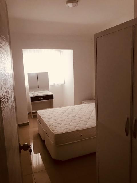In the apartment: living room with kitchen, 2 bedrooms, 2 bathrooms (hot water heater), balcony.