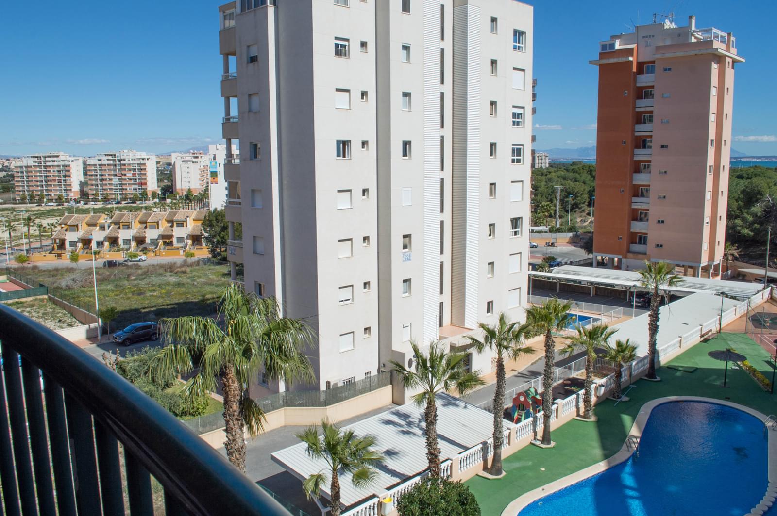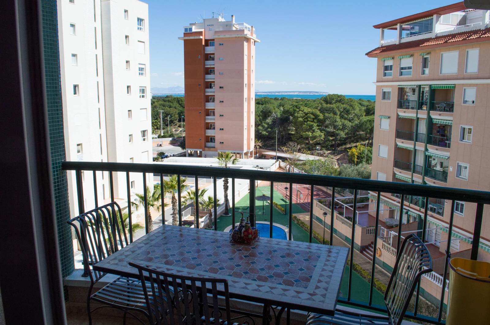 For sale beautiful apartment with the sea views in the charming turistical city Guardamar del Segura! It has everything: 2 bedrooms with built-in wardrobes, living-dining room, bathroom, terrace with sea view, kichen, large swimming pool, storage room, garage, tennis cort, garden. There is near the supermarket, restaurantes, park. There are 900 mts from the beach! Perfect apartment for living or for the rent business.