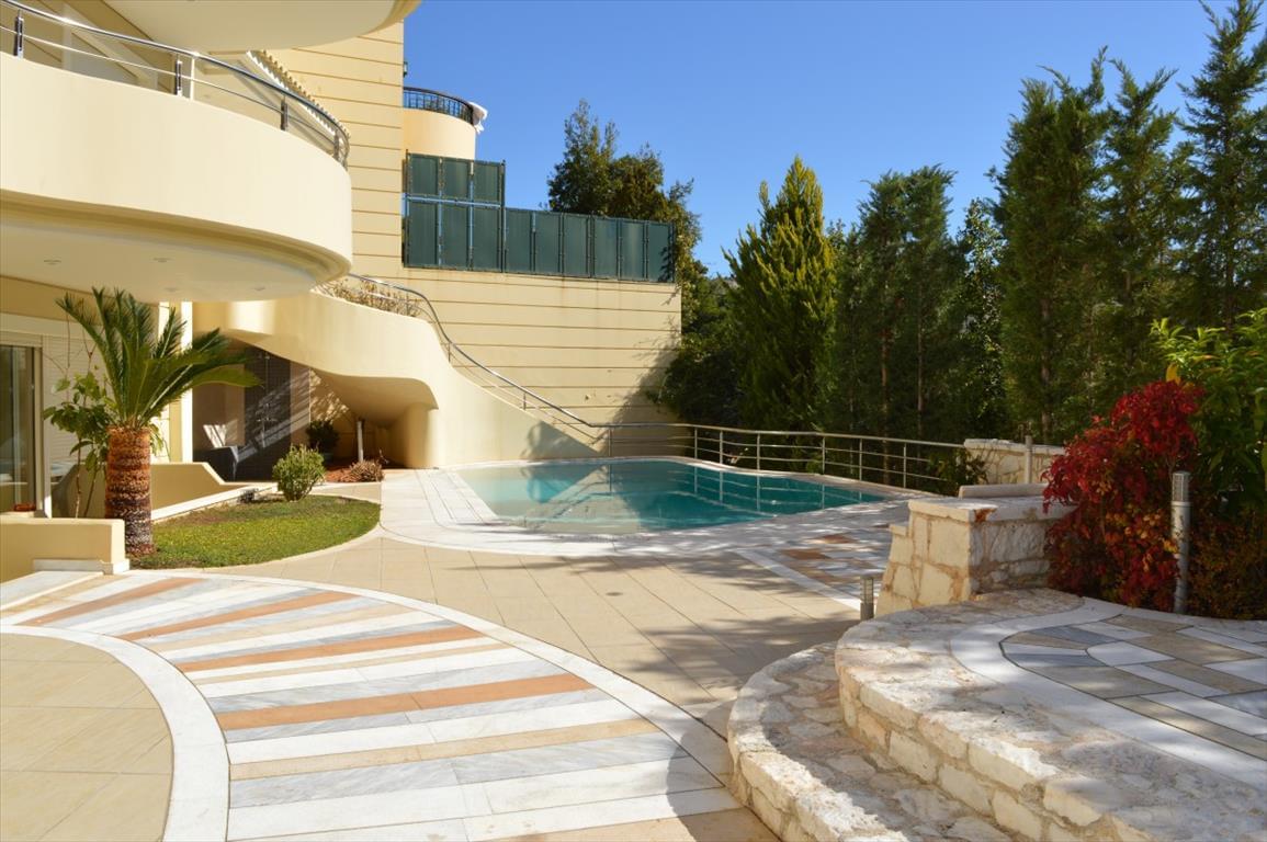 For sale 4-storey villa with an area of ​​630 square meters in Athens. The basement consists of one bathroom, one storage room. The first floor consists of one bedroom, living room with kitchen, one kitchen, 2 shower rooms, one pantry. The second floor consists of 3 bedrooms, 2 bathrooms, one shower room. The third floor consists of a living room, one bathroom. Has a view to the sea, to the mountains, to the city, also there are armored entrance doors, solar panels for heating water, fireplace, air conditioning, awnings, pool, garden, lawn, elevator, garage, heating, alarm.