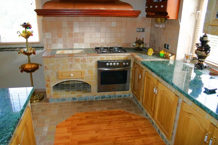 Im Erdgeschoss befindet sich ein großes Zimmer mit einem Wohnzimmer und einer voll ausgestatteten Küche mit italienischem Marmor.