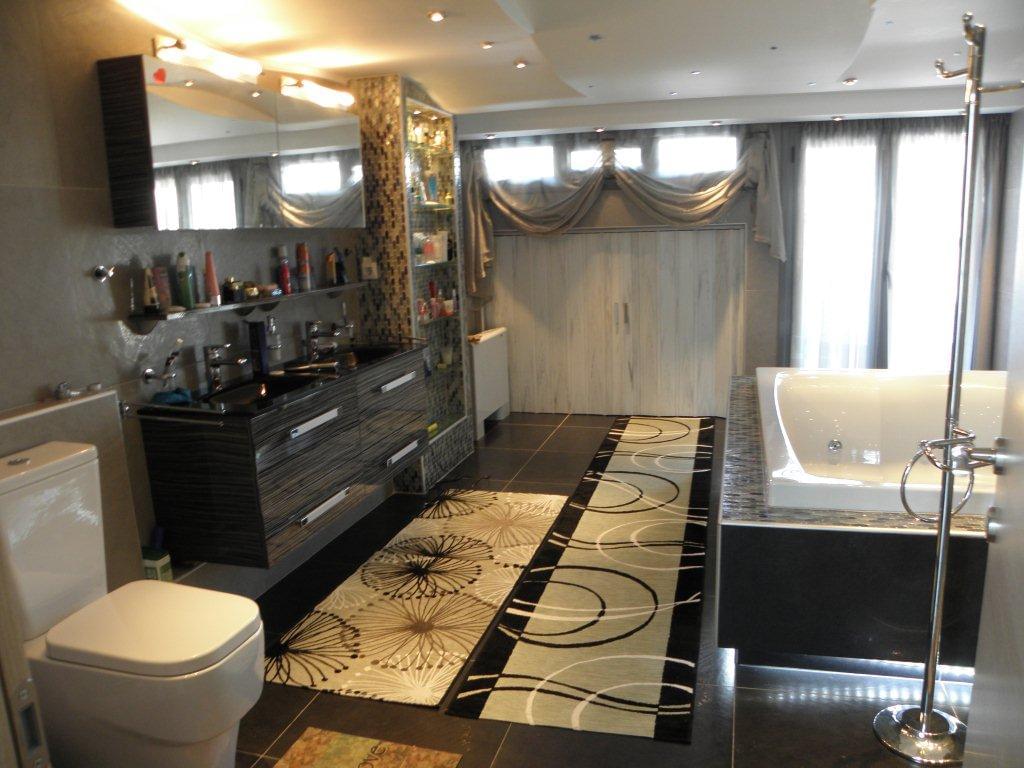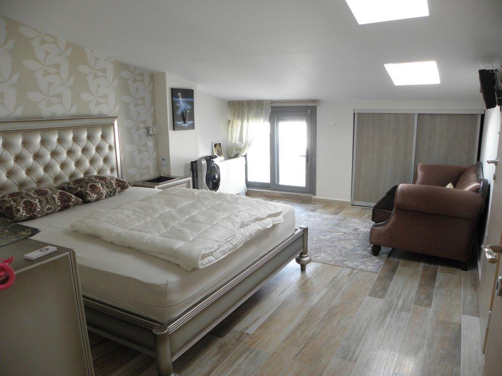 For sale duplex of 270 sq.m in Kavala. Duplex is located on 2 levels. The fourth floor consists of a living room with a kitchen. The fifth floor consists of 2 bedrooms, living room with kitchen, 2 bathrooms, one bathroom, one office. Has a view of the sea, the city, also has furniture, armored entrance doors, fireplace, air conditioning, awnings, elevator, heating, utility room.