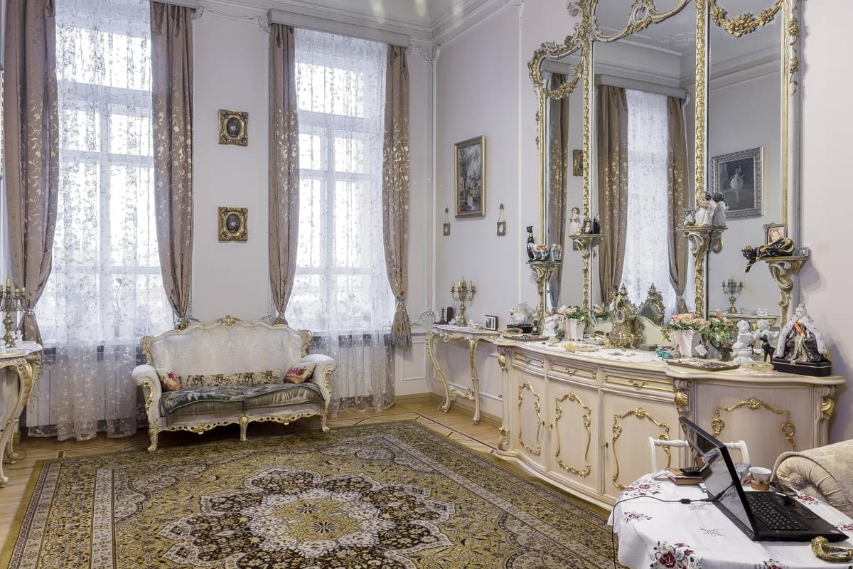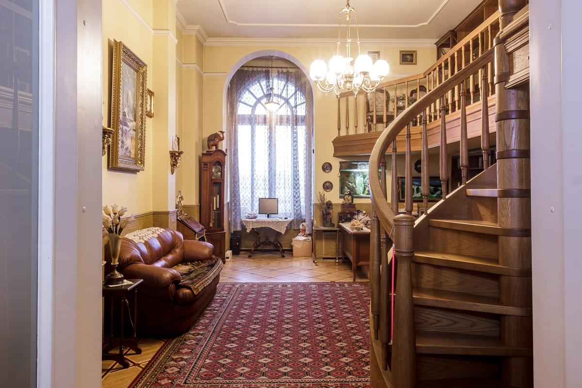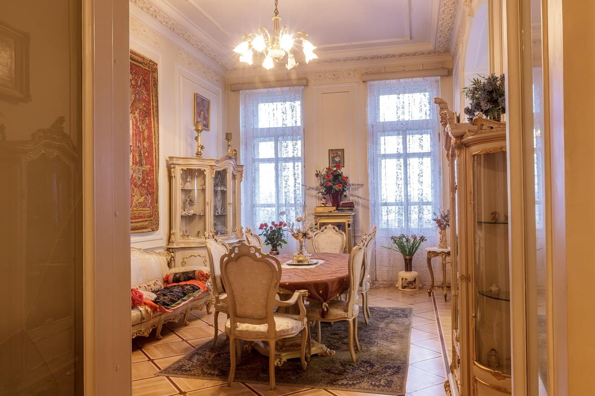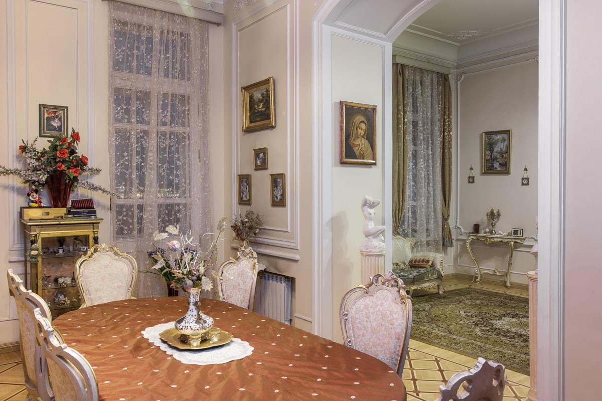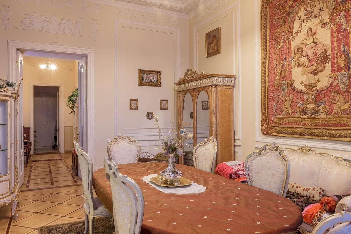 Видовая 4- комнатная квартира общ. пл. 200 м2. Квартира двухсторонняя на 3/6 этаже, есть лифт. Интерьер в классическом стиле, окна обращены на улицу и во двор. Потолки во всей квартире украшены шикарной гипсовой лепниной, дубовый наборный паркет, есть два действующих камина. Высота потолка h = 4,10 м. В квартире просторные комнаты 21,8м2 + 39,1м2 + 26,3м2 + 24,8м2, также в кабинете размещена дубовая лестница, ведущая на второй уровень, где размещена библиотека и гардеробная комната. Рассматриваются варианты продажи квартиры с предметами интерьера и без них. Вход парадный с улицы. Шикарная входная группа с широкими лестницами, колоннами, с использованием мрамора. В доме ТСЖ. Малонаселенная парадная. Прямая продажа, в собственности более 5-ти лет, документы к продаже готовы! Звоните прямо сейчас, записывайтесь на просмотр!