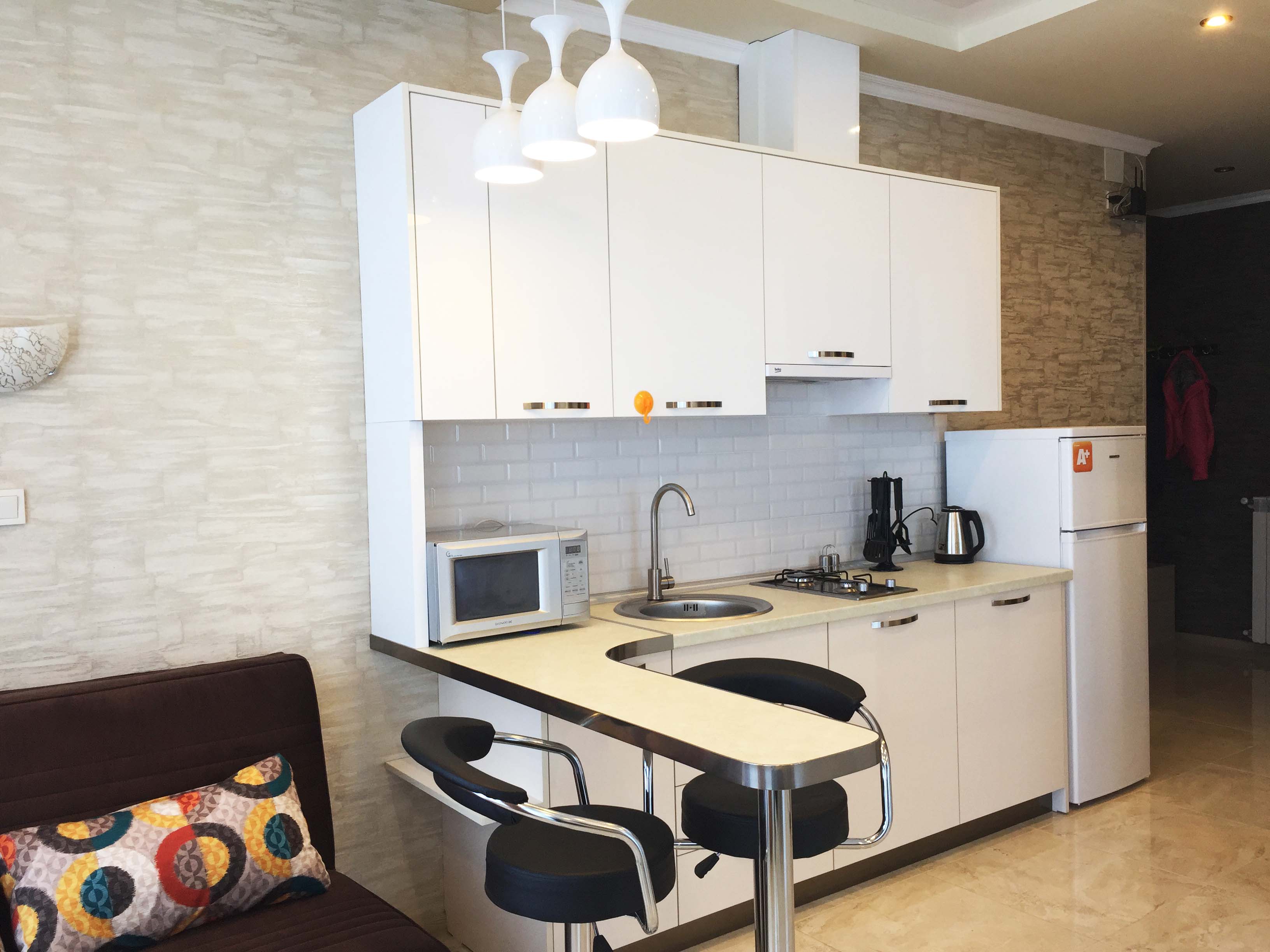 The apartment consists of a studio-hall, a bedroom, a bathroom and a corridor. Equipped with all necessary furniture and appliances, wi-fi, counters. Monthly maintenance fee 30 GEL (12 USD)