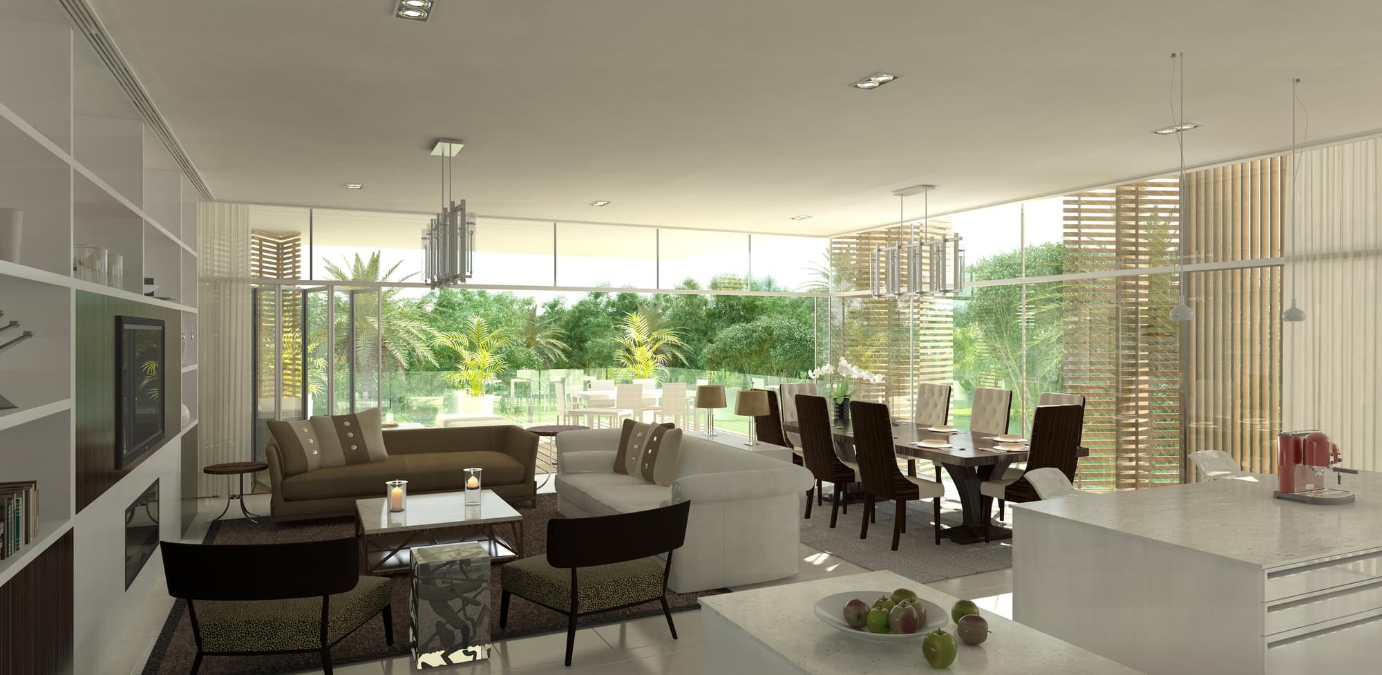 The 4-bedroom villas come with luxurious en-suite bathrooms and large walk-in closets. Each property comes with fully landscaped gardens, swimming pool, BBQ area, maids and drivers room, 2 car garage, floor to ceiling windows and access to world class amenities such as the health facilities at the body language gym, pool and tennis courts, the heart and soul spa and award winning restaurant, the Farm.