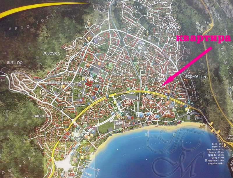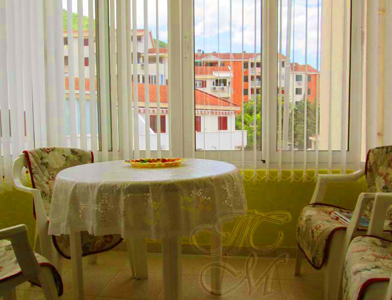 Квартира в Будве в районе Вели Виногради на улице Бабилония. Площадь квартиры 35 кв.м, 2 этаж 4 эт. дома. Кухня-гостиная (угловой двуспальный диван) с выходом на застекленную террасу, спальня (двуспальный диван-книжка) с выходом на свой балкон, санузел с душевой кабиной и стиральной машиной. Кондиционер, микроволновая печь, спутниковое ТВ с русскоязычными каналами, интернет Wi-Fi через роутер Telenor, утюг, фен, постельное белье, полотенца. Размещение МАКСИМУМ 4 человек. До Словенского песчаного пляжа 5-7 минут пешком по ровной дороге. В шаговой доступности рестораны "Златибор", "Олива", "Вели Виногради", кафе "Гранд" и "Кенгуру", пиццерия "Феникс", пекара "Монтенегро", продовольственные магазины, аптека, детский сад. Тихая улица.
