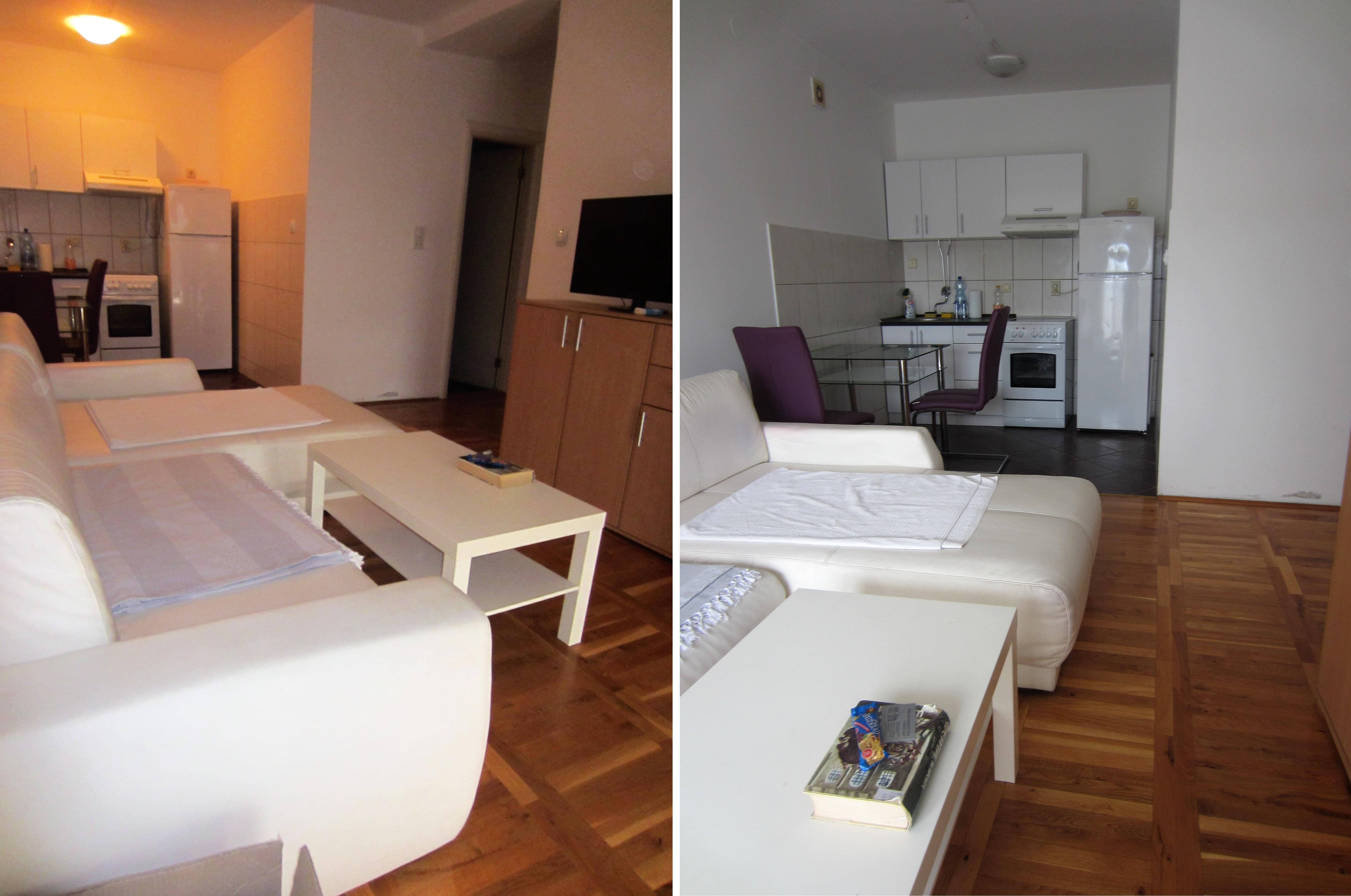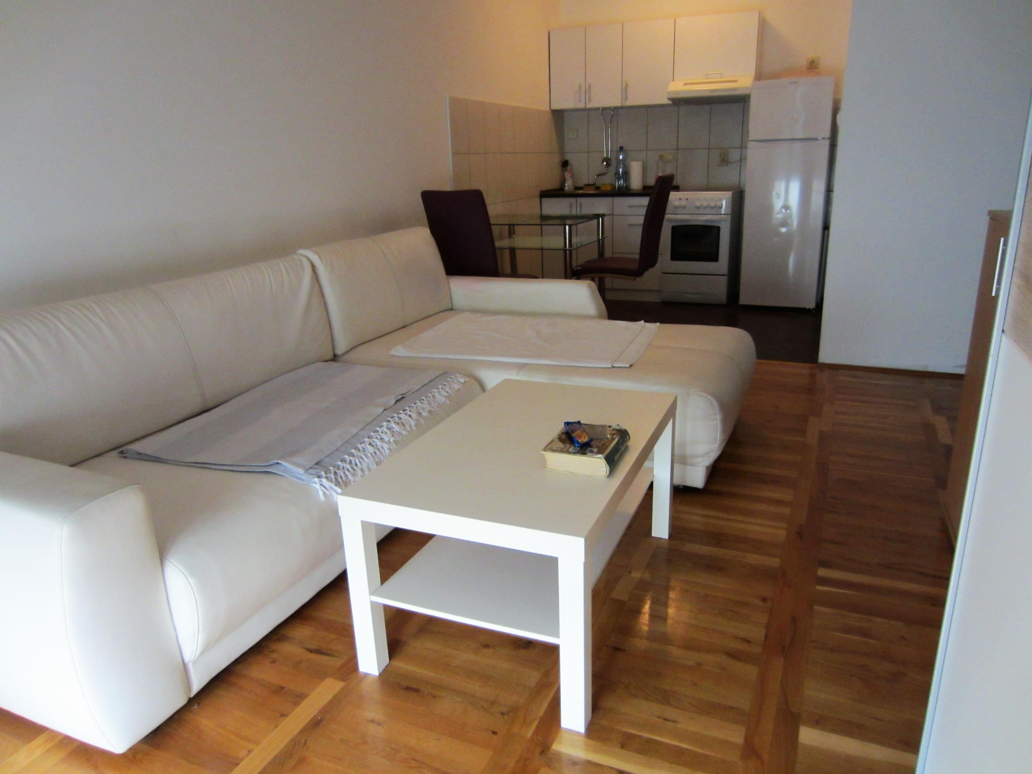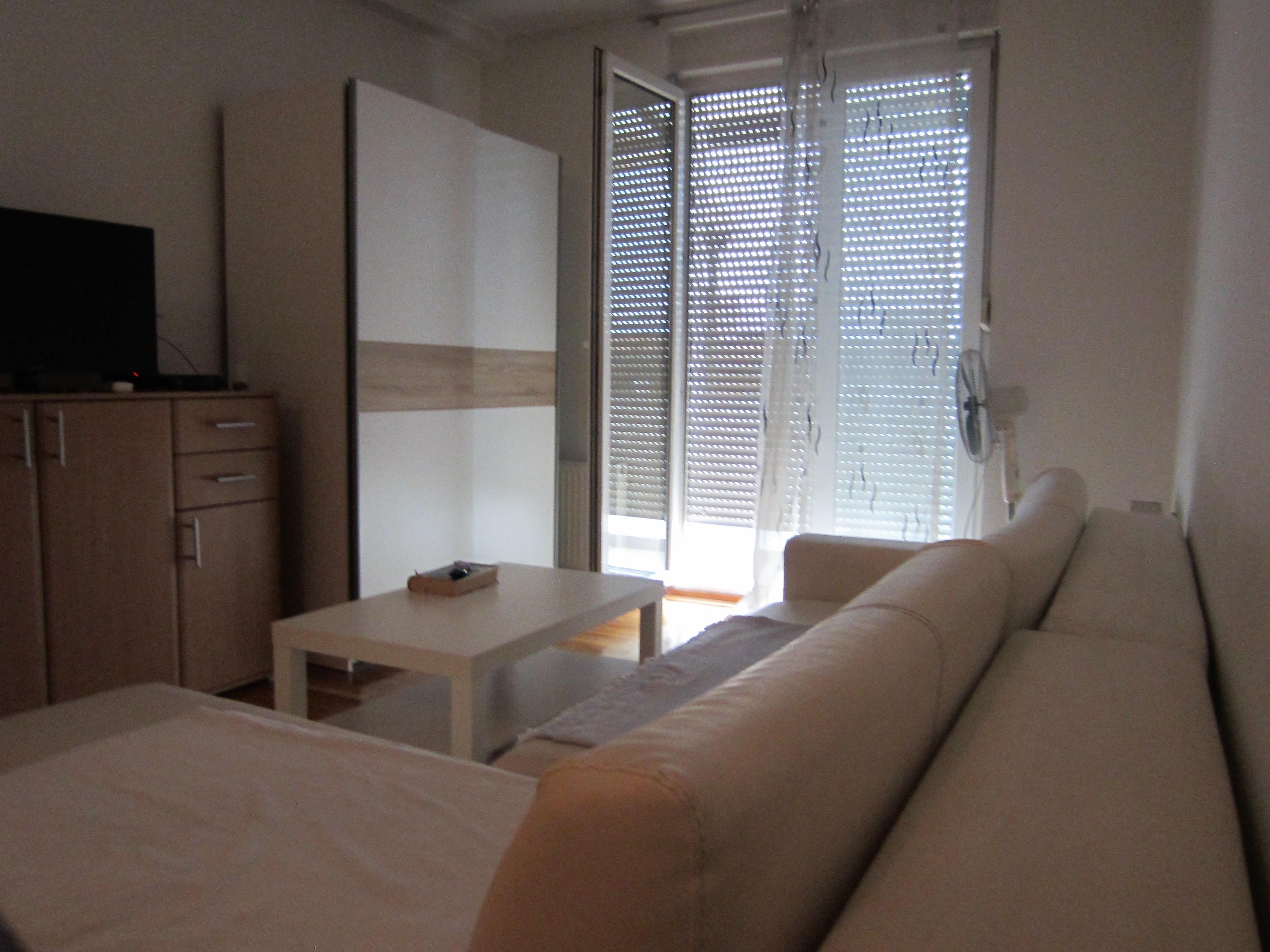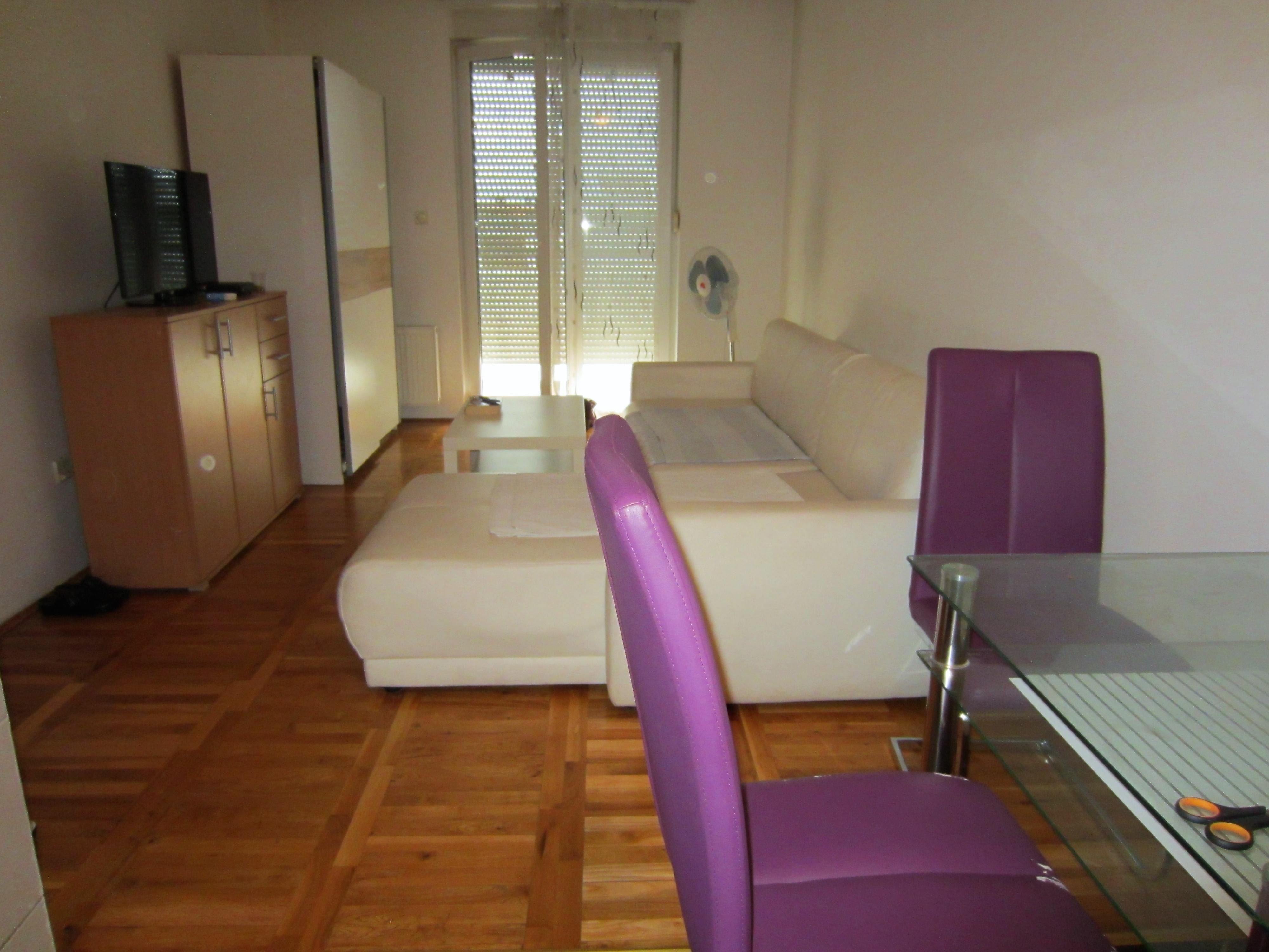 Fully furbished duplex apartment in the centre of Novi Sad, Serbia. The apartment features a large three-bedroom apartment with spacious living and dining area, one bathroom and one WC on the upper level; as well as a studio apartment with a bathroom on the lower level. Private access to the lower level (studio apartment, roughly 30 square meters), which thus may be used separately as well. Both levels are fully furbished (featuring one kitchen each with excellent amenities) and ready to move in, with air-conditioning and heating included. The space features stylish interior design and quality materials (wooden floors, quality furniture). In addition, the upper level features a large corridor with additional storage room that may be utilised as a closet in addition to those available in each bedroom. Furthermore, the upper level terrace includes two additional storage compartments, 7 and 3 meters long, respectively. The terrace features a lovely view at the city centre and Synagogue. High ceilings, with the lowest point at the terrace exit reaching 2 meters of height.