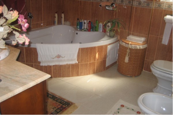 На втором этаже находится элегантный,большой зал с камином,большая,светлая кухня,две спальни,одна из которых включает в себя ванную комнату с джакузи.
