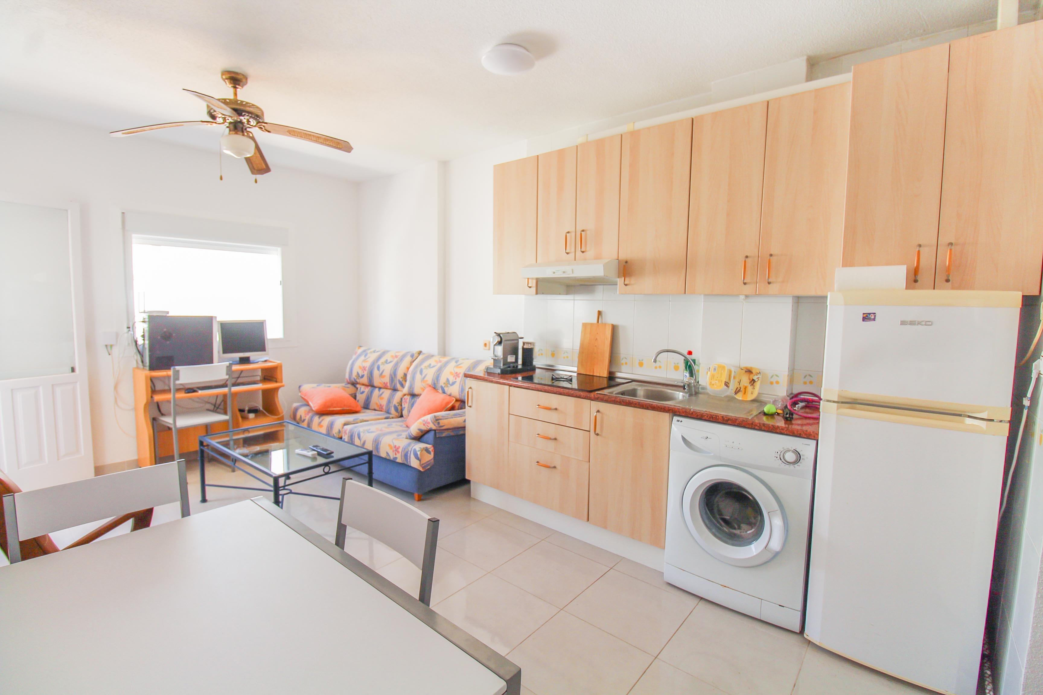 Жилая площадь квартиры 45м². Комфортная планировка: полностью оборудованная кухня американского типа со всей необходимой бытовой техникой (стиральная машинка, керамическая варочная поверхность, холодильник, вытяжка), салон с обеденной зоной с выходом на террасу, отдельная спальня комната, ванная комната с душевой кабиной. Квартира в очень хорошем жилом состоянии.