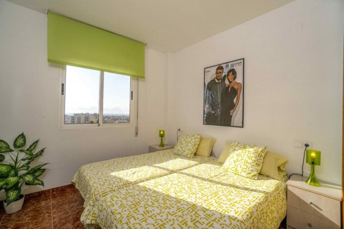 Квартира расположена в чудесной резиденции Calas Blancas del Mar II на пятом последнем этаже. Жилая площадь квартиры составляет 58м²: две отдельные спальные комнаты, шикарный салон с выходом на террасу 6м², полностью оборудованная мебелью и бытовой техникой (керамическая варочная поверхность, вытяжка, холодильник, микроволновая печь) кухня и ванная комната. Небольшое помещение для стирки белья. Квартира светлая и соленная. С террасы открываются красивые виды на город и на Plaza Europa.