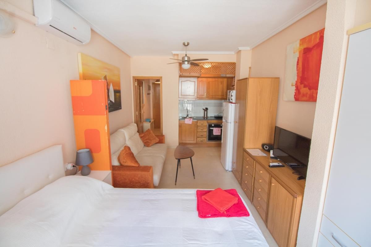 Очаровательная квартира-студия отличается особым удобством и практичностью. Яркая, стильная и комфортная квартира в Испании находится в замечательном городке Торрревьеха, побережье Коста Бланка на второй линии Средиземного моря!