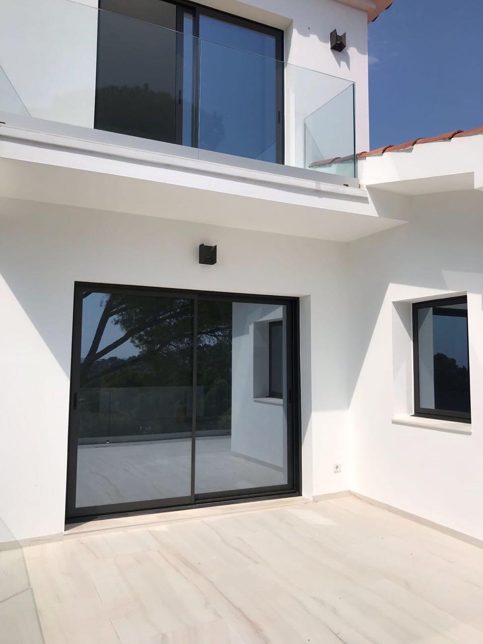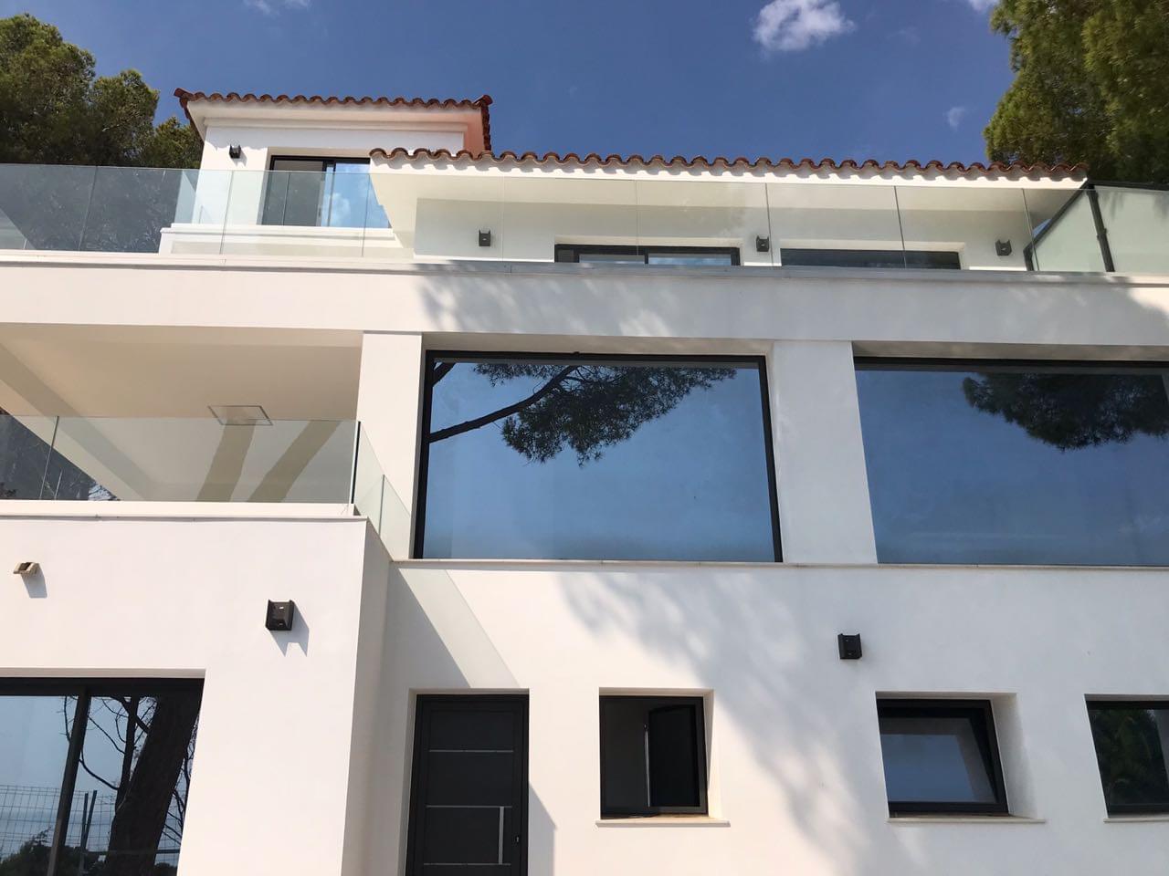Все комнаты оснащены кондиционером. Дом имеет высококачественную отделку с алюминиевым и двойным остеклением, а также каменный пол, паркет и мрамор. Гараж на 2 машины.