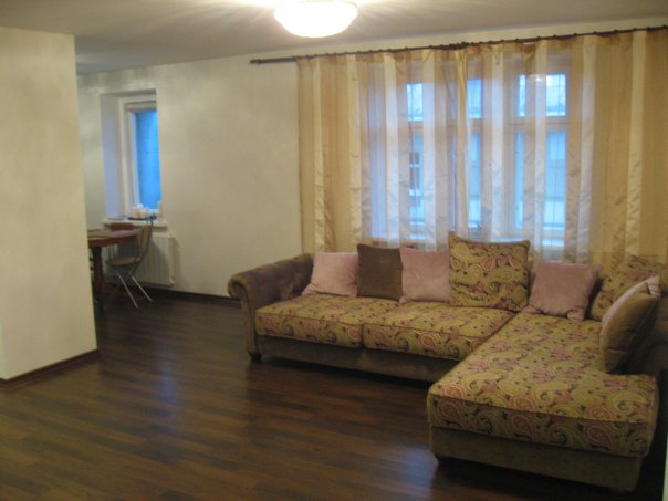 Новый дом, лифт OTIS. 7 этаж, Площадь 90 метров: 45 - гостиная спальня - 20 метров и кабинет – 16, кладовая-гардероб 5 м кв. К квартире прилагается паркинг место (шлагбаум, круглосуточная охрана всего дома и парковки), также дополнительно есть подземный паркинг в соседнем доме. В квартире есть вся бытовая техника: ЖК TV (Phillips Ambilight), Sony, DVD, Спутник, Стиральная машина, Посудомойка, Полностью укомплектованная кухня. Ванная комната: Джакузи с душевой кабиной.