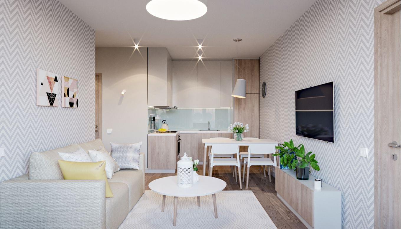 Ultra modern apartment in a house with five-star service. This 54.30м2 property consists of a large bedroom with a double bed, a semi-open kitchen, a living room, and a bright and cozy children's room. The space is filled with natural light - for a good mood and energy savings. Once you have received the keys, you can use your new property: either move in or get it leased. We will take care of the further management of your property. The property offers 10.2% annual performance to date.