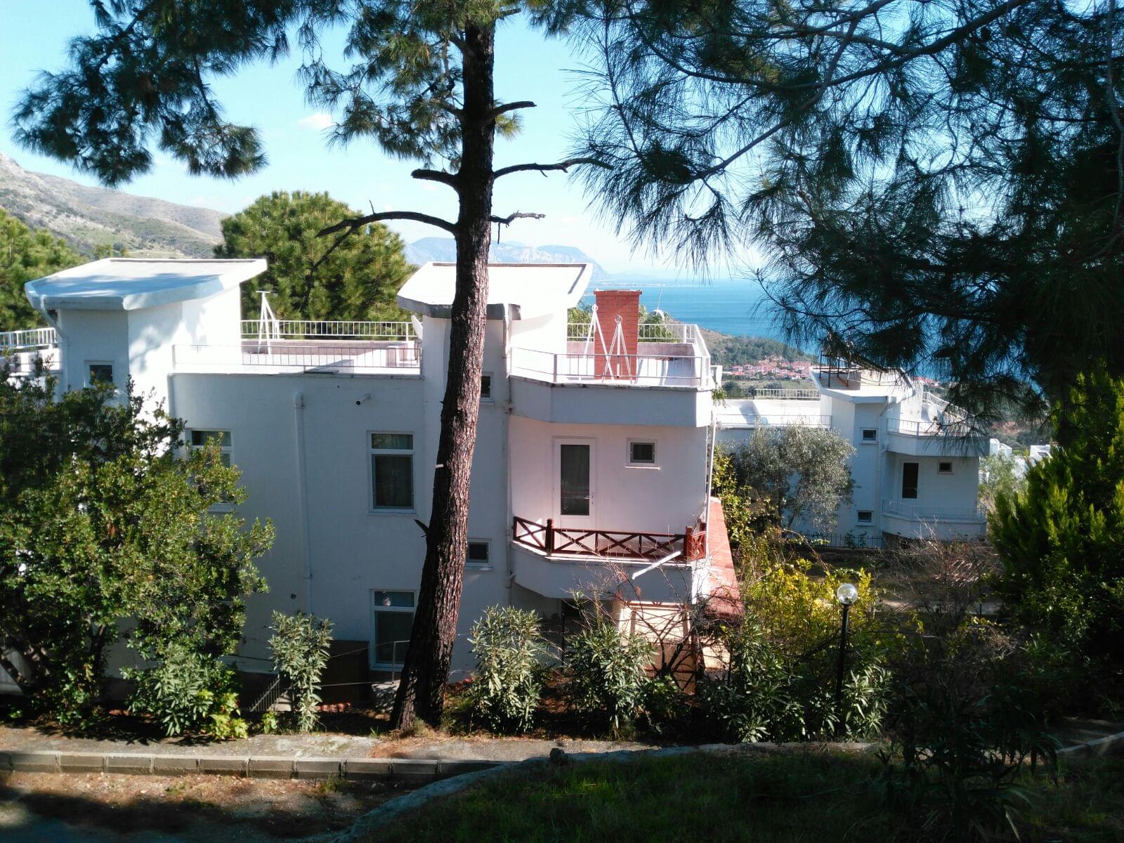 House is a well maintained. all house is surrounded by sheds. All wet floors are made of 1st class material. Top quality material are balloon cover kitchenware. The bathroom has everything from a walk-in shower cabin to the radio. It is a corner villa with a 200 m2 garden. 200-250 meters from the sea. the site has its own private umbrellas and sun loungers. 2 olives in the garden, 2 lemons, pomegranate, mulberry, vine, 2 palm, orange etc. There are trees. The garden has its own underground garage. All rooms has seaview.