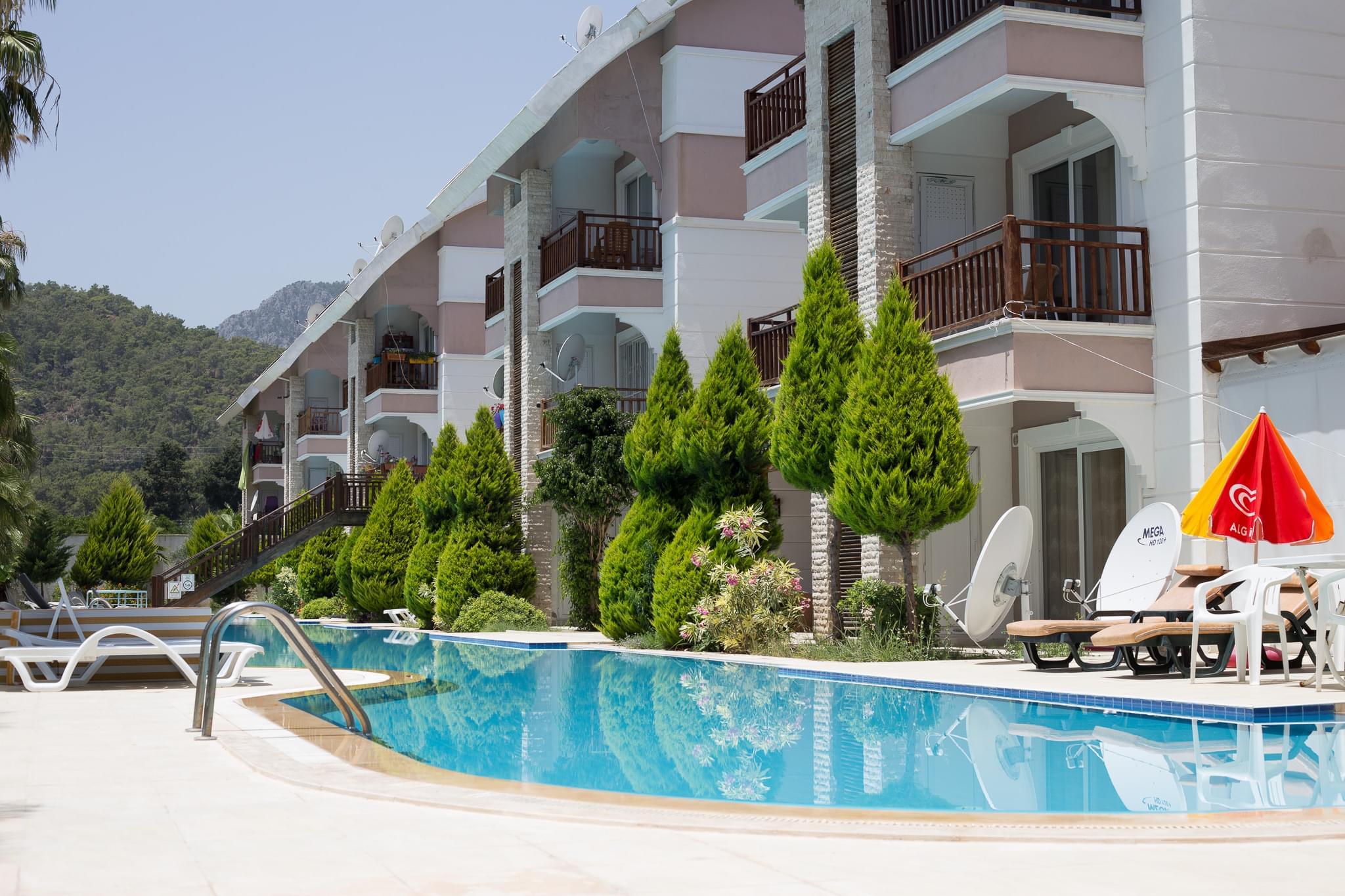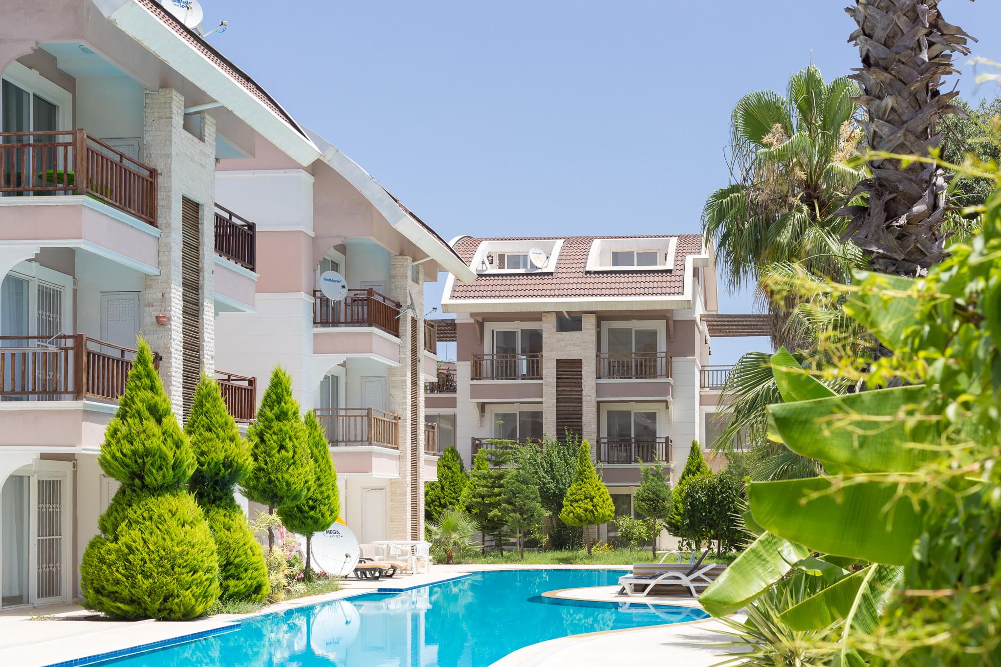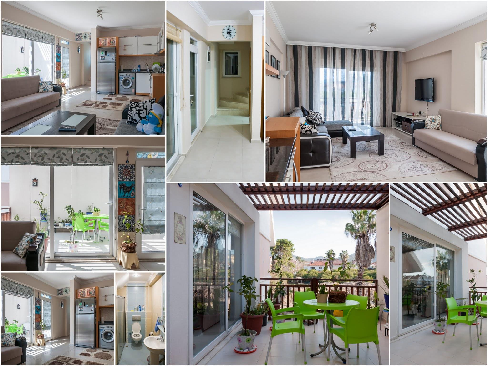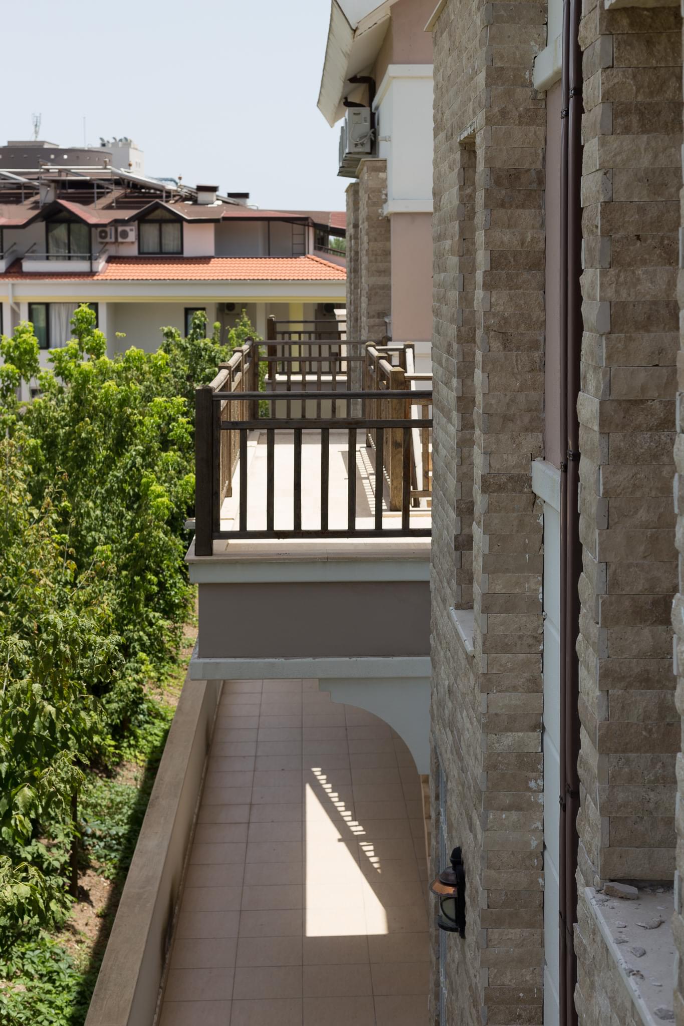Комплекс, в котором находятся апартаменты, расположен на так называемой второй отельной линии, поэтому от моря его отделяет только соседство таких известных отелей, как Amara Wing Resort, Palmet Resort, Crystal Aura Beach Resort & Spa и т.д. С балконов и террасы предлагаемых апартаментов открываются красивейшие виды на основные достопримечательности Кемера: часовую башню, мечеть и величественные окружающие горы, включая знаменитую канатную дорогу на гору Тахталы. Справа от комплекса по улице Ахмет Чавуш расположены цитрусовые и гранатовые сады, от которых веет прохладой и приятными фруктовыми запахами.