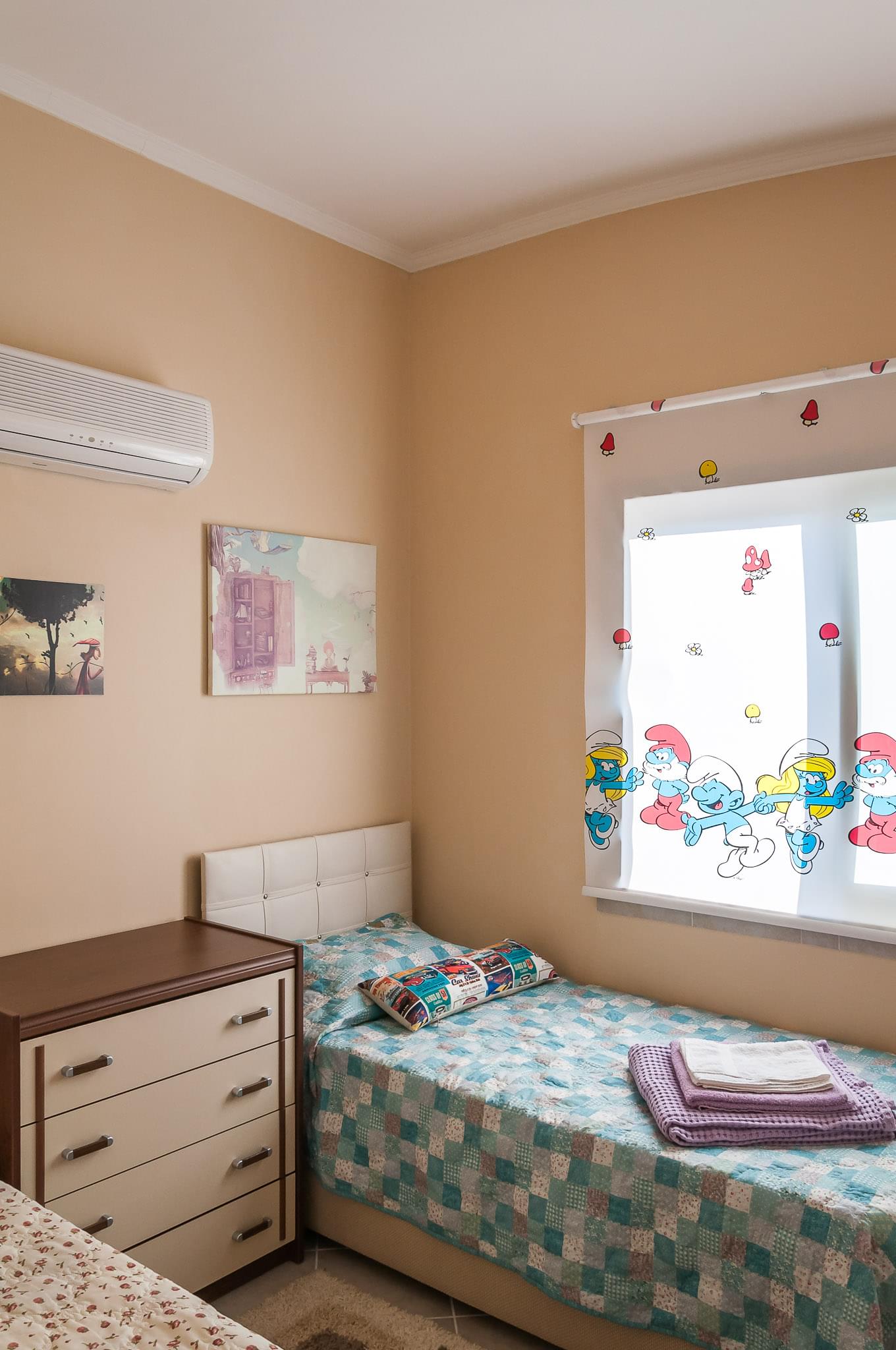 На втором этаже находятся две уютные спальные комнаты, санузел с душевой кабиной и туалет. С балкона спальни на втором этаже открываются еще более потрясающие виды на достопримечательности Кемера, горы и зеленые окрестности.