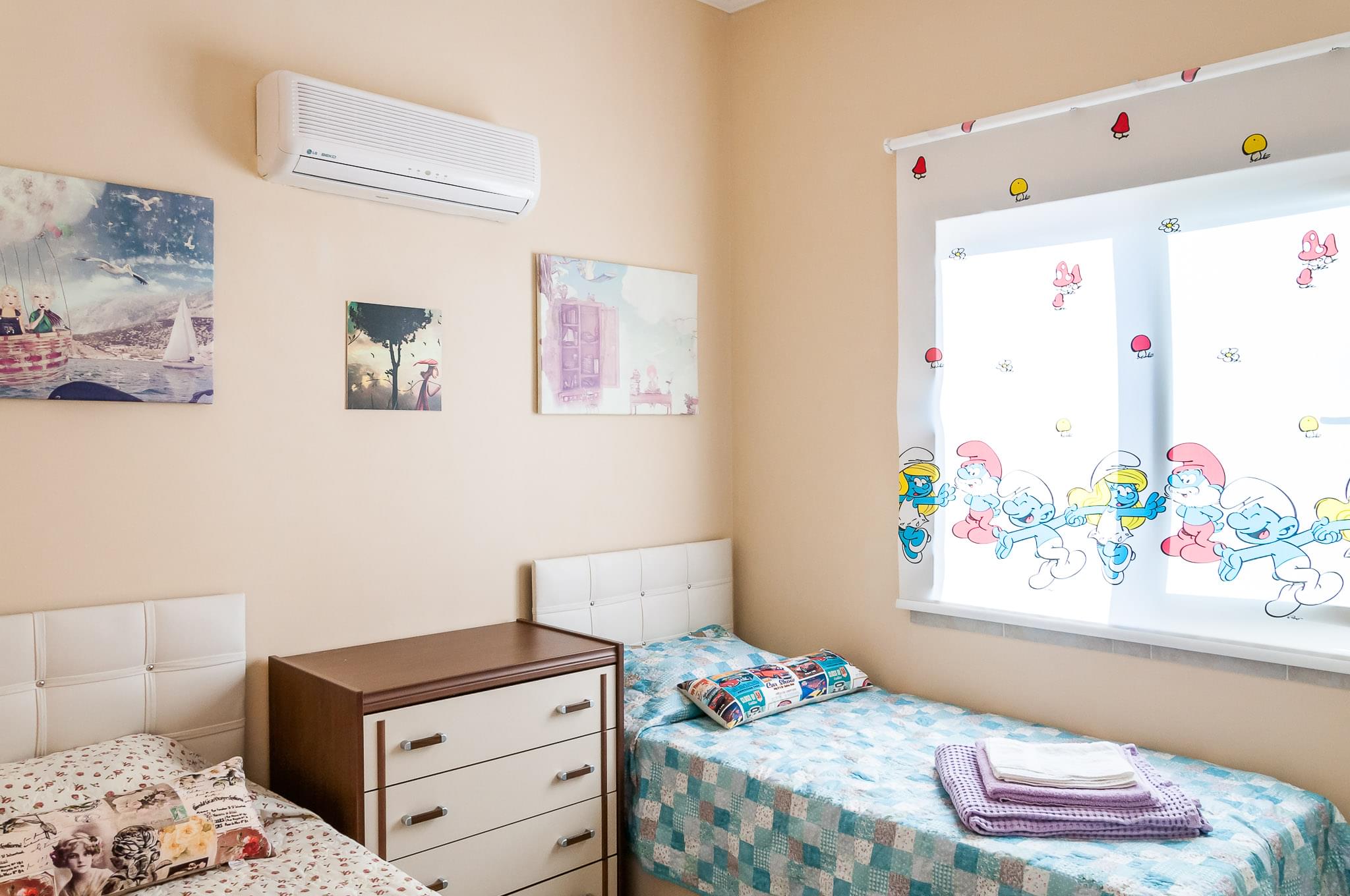 Квартира полностью меблирована и оснащена кухонным и другим оборудованием: имеется в наличии газовая плита, электрическая духовая печь, стиральная машина и т.д. В апартаментах работает спутниковое ТВ, на двух этажах в каждой комнате установлен кондиционер.
