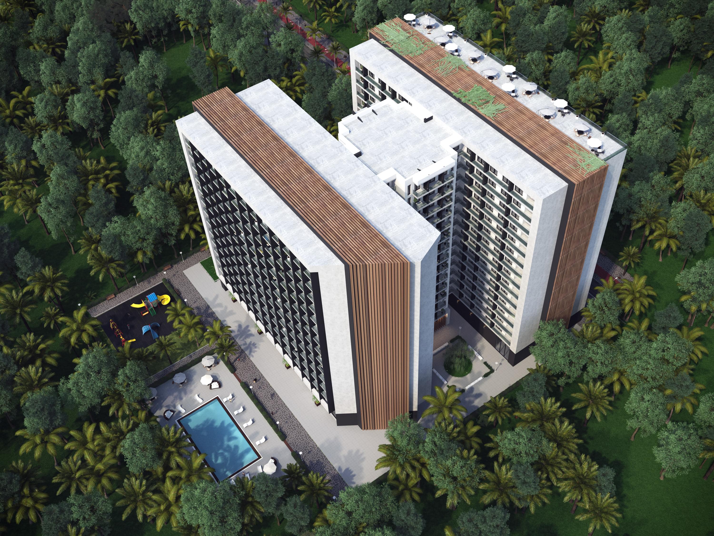 Комплекс состоит из 15 этажей (14 жилых этажей и первый этаж - коммерческие помещения), всего 596 номера, включает в себя рекреационную зону, места для паркинга, а так же приспособлен для людей с особыми потребностями.
