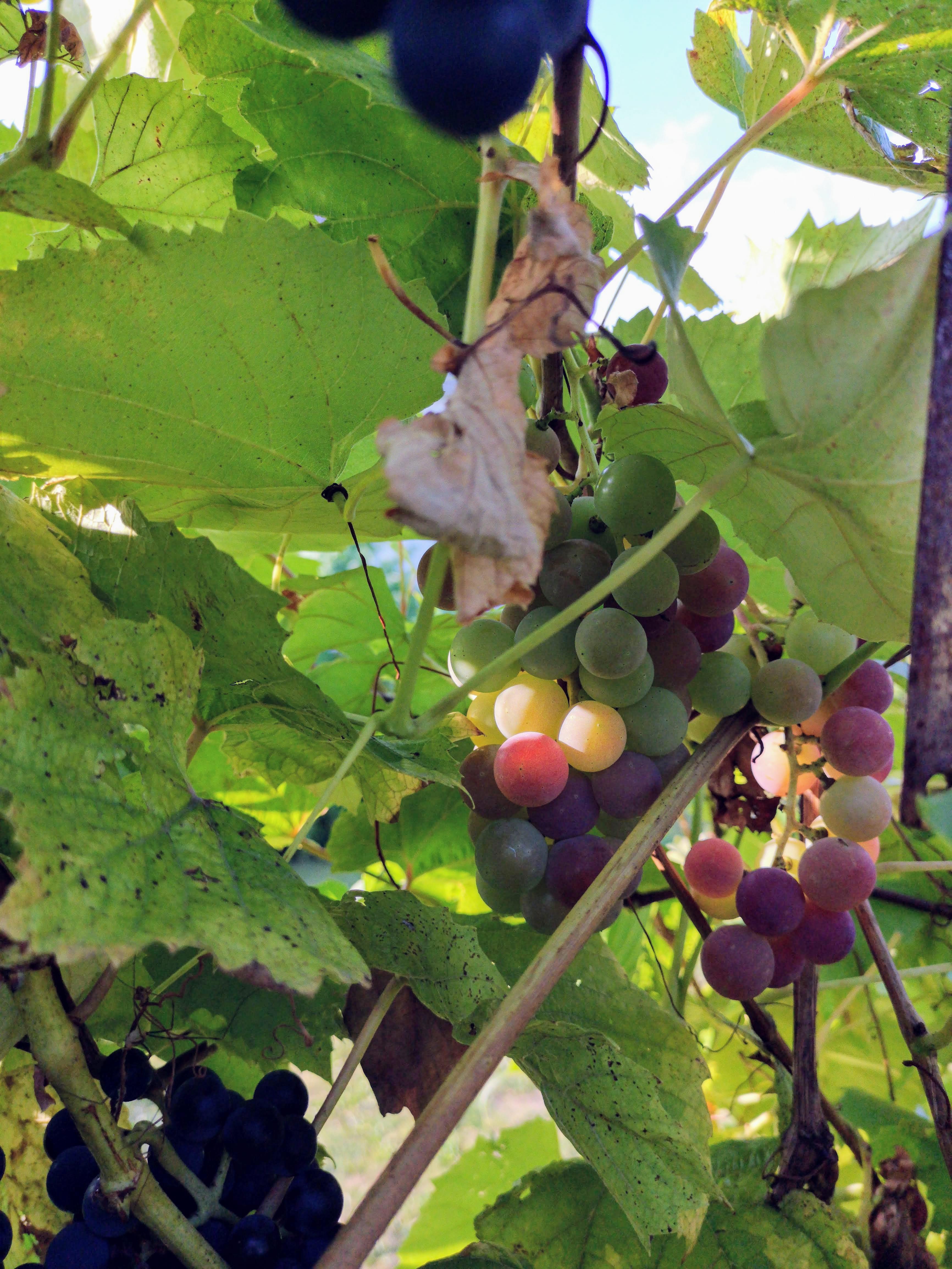 There are fruit trees, grapes, shrubs, a pond, a shed + aviary in the garden.