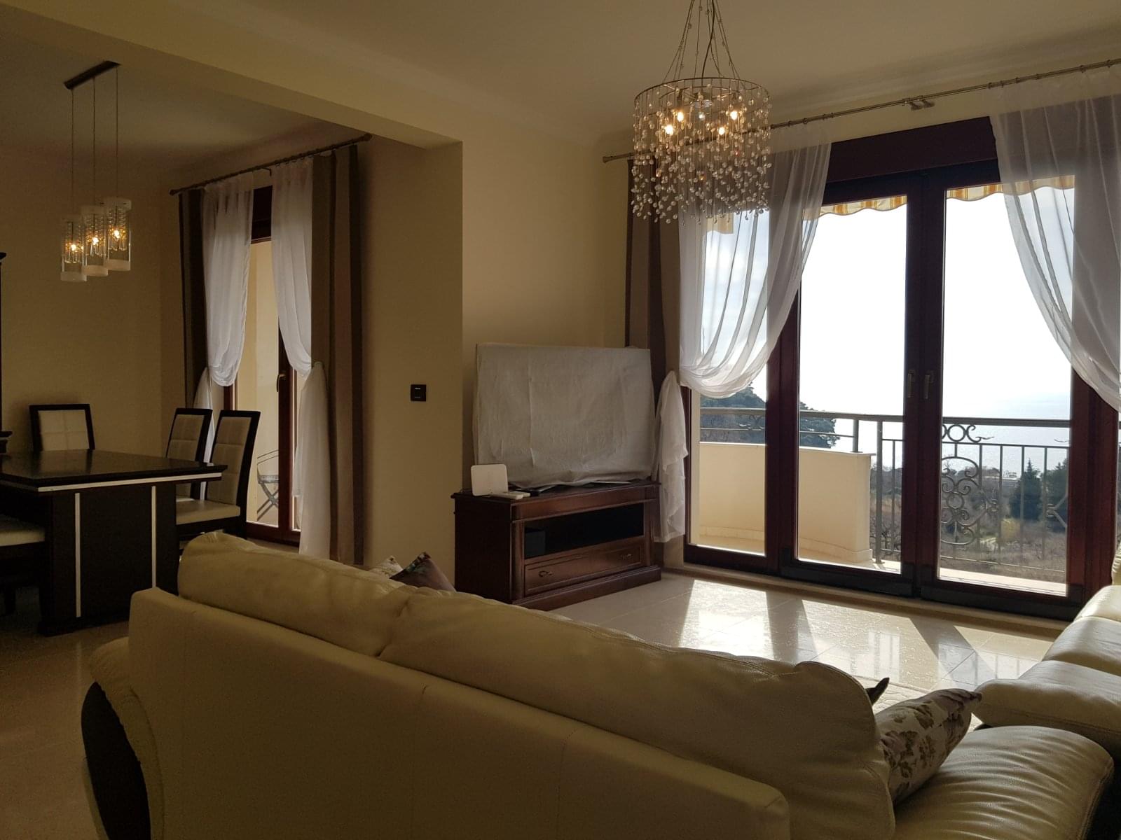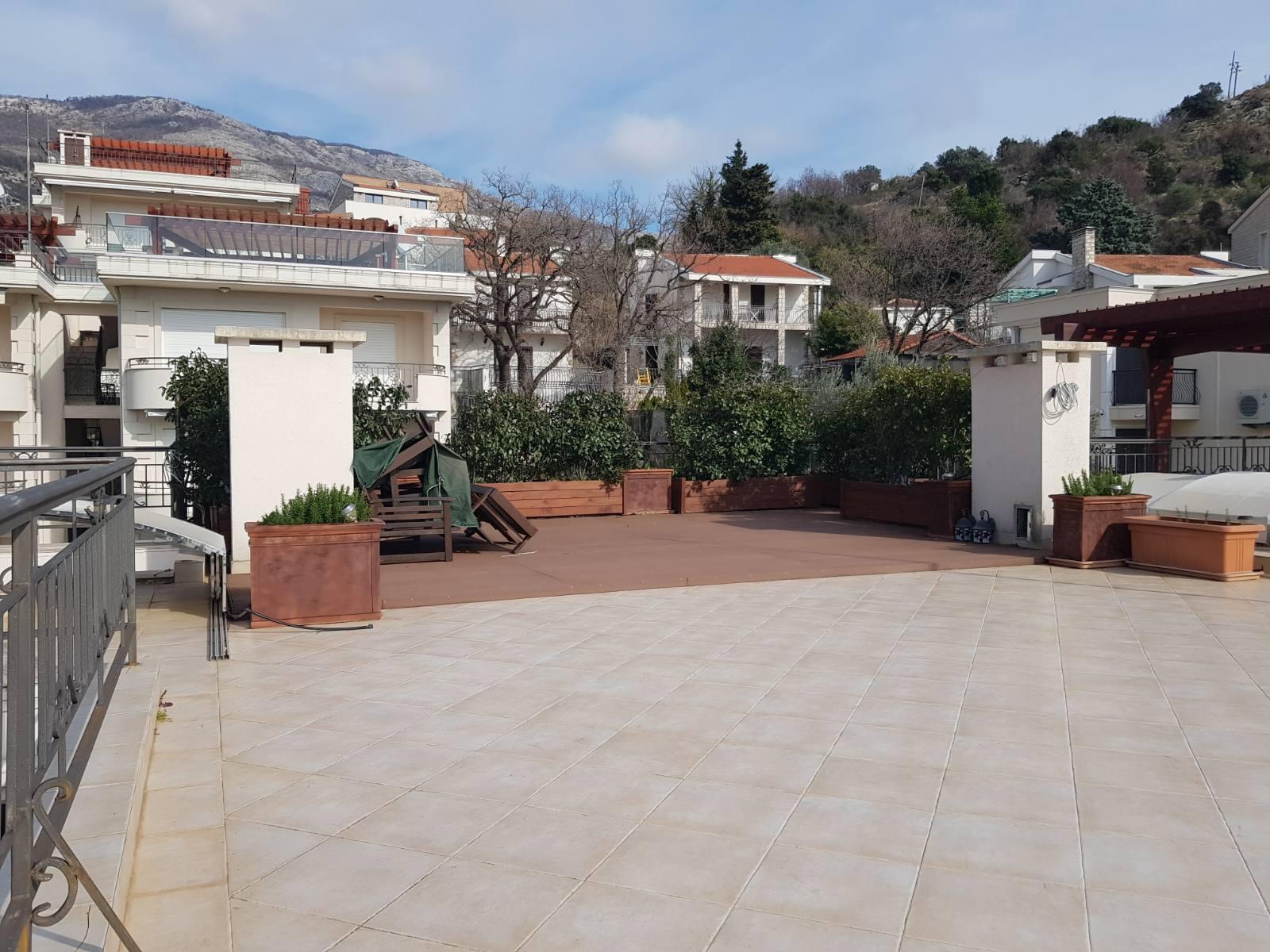 Продается трехкомнатная квартира с панорамным видом на море в г. Петровац, район Приеворац. Квартира расположена третьем этаже в новом современном комплексе, расположенном на возвышенности. Квартира состоит из: гостиной - кухни, 2 спален, 2 санузлов и двух балконов. Дополнительное пространство - собственная терраса на крыше здания площадью 114 кв.м.