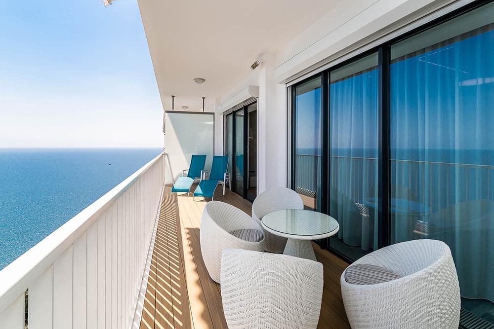 Терраса: Кроме ошеломляющего вида на море здесь также есть на что ещё обратить внимание. Все сделано из высококачественных импортных материалов. Террасная доска от австрийского производителя LEGRO ULTRA Naturale отличается высокой износостойкостью, а насыщенный цвет долгосрочной невыгораемостью на солнце. Летняя мебель от фабрики VARASCHIN (Италия) кристального белого цвета с седушками из водоотталкивающей ткани. Кстати Искусственный ротанг, из которого сделана мебель именно этой компании, используется в производстве многокилометровых океанических рыболовных сетей, что говорит о высокой прочности изделий. Также предусмотрена возможность проведения вечеров на террасе в холодное время года. Для этого с помощью инфракрасной лампы VARMA TEC (Италия) устроен локальный обогрев места возможного размещения кресел.