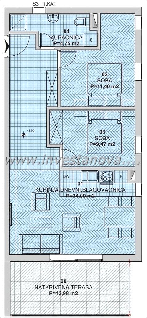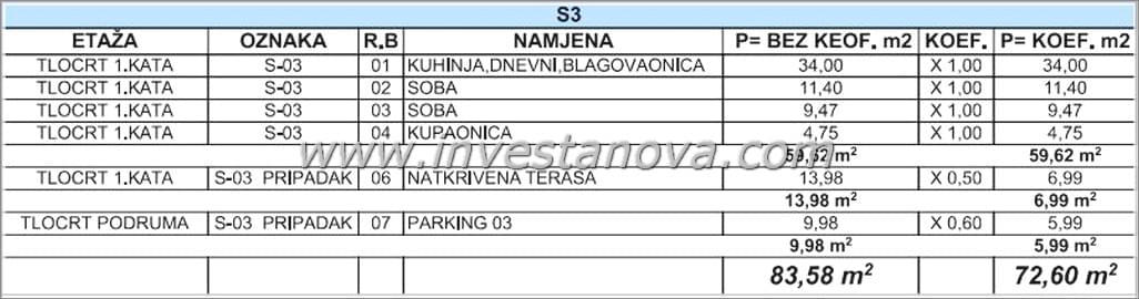 Квартира S3: 72,60 м2 x 1950 € м2 = 141 570 €