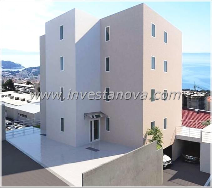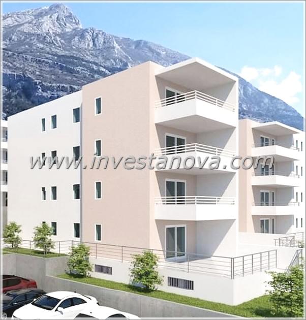 Новостройка: два здания в спокойном районе в западной части Макарски в 960 метрах от пляжа. Каждое здание состоит из подземного помещения с гаражными местами и 4-х этажей с квартирами.