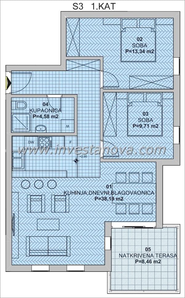 Квартира S4: 69,13 м2 x 1950 € м2 = 134 803 €
