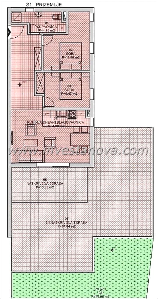 Квартира S4: 64,28 м2 x 1950 € м2 = 125 346 €