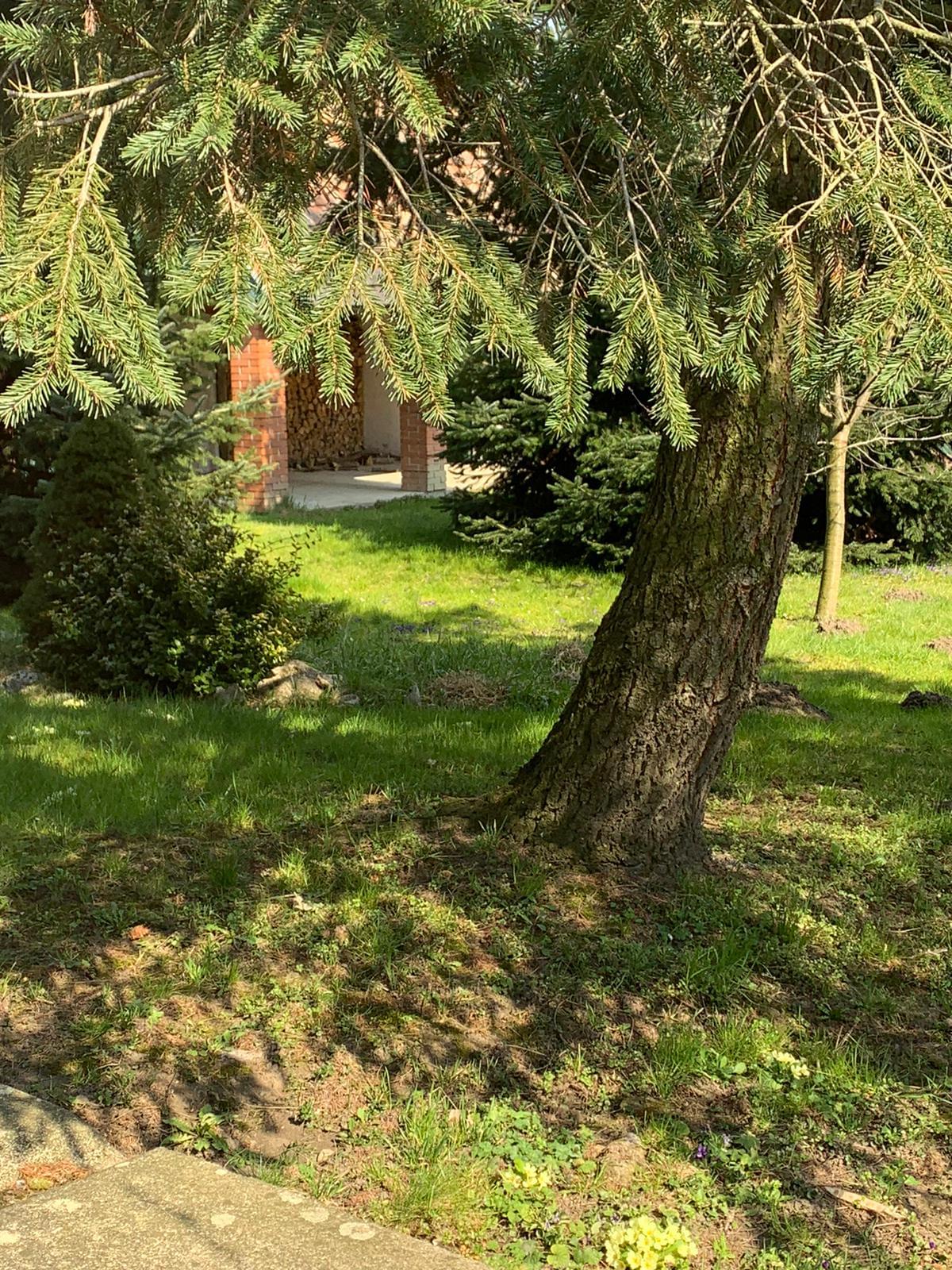 В саду находится, удобная хозяйственная постройка-домик для разных нужд, зона барбекю.