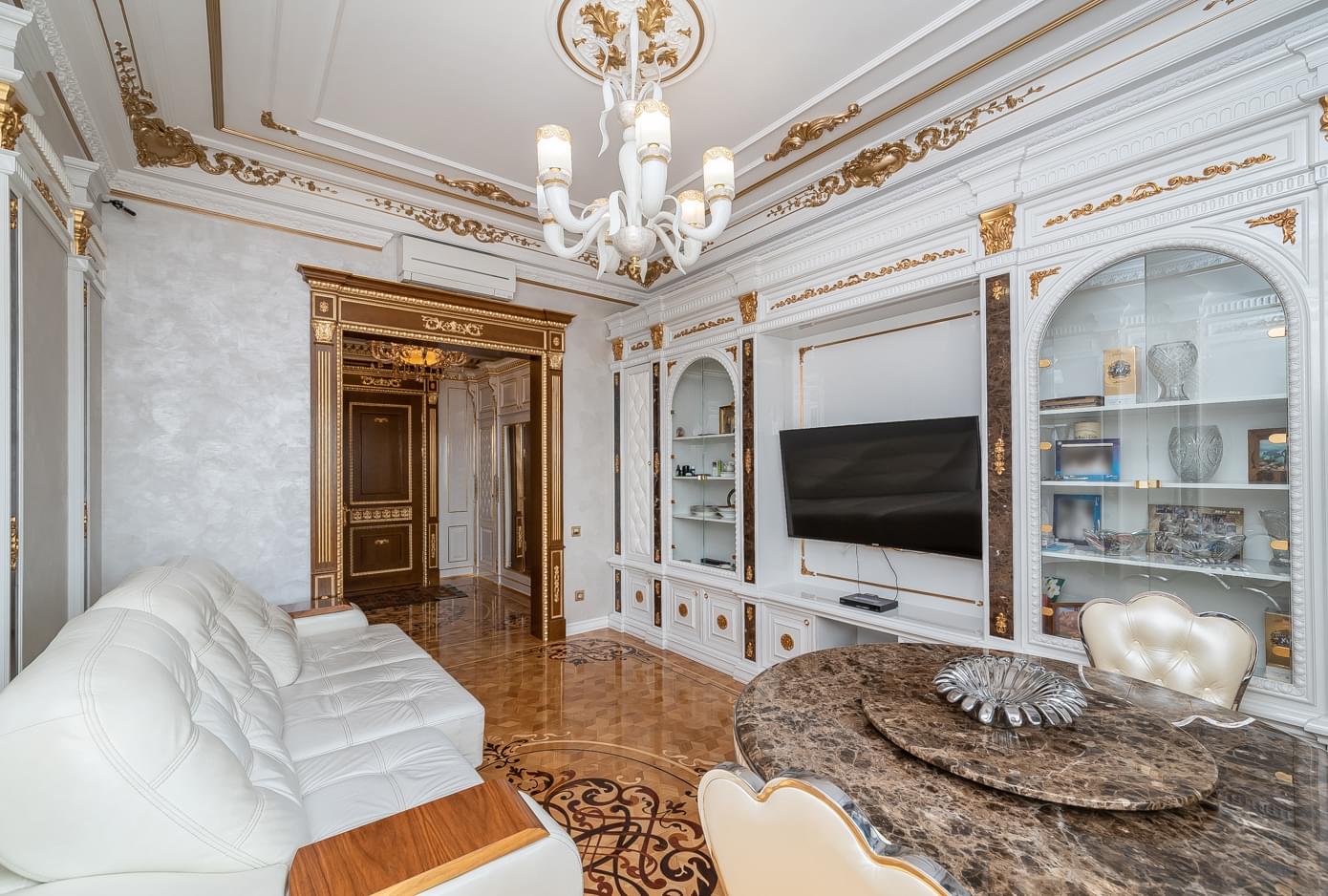 Flat is in center of Moscow is situated in Kotelnicheskaya Embankment Building (one of Seven Sisters). It has 2 bedrooms, 2 bathrooms, 1 kitchen and 1 living room. Also it has italian furniture and it was made in italian classical design. It has beautiful view on the Red Square. Please contact by phone or what`s up messenger