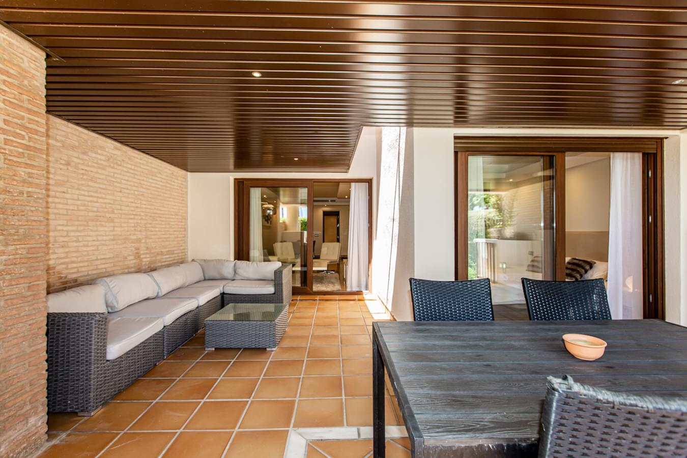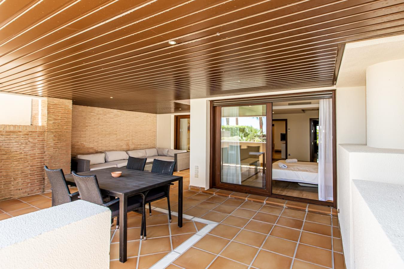 Exclusive apartment built and equipped with top quality materials and luxury finishing including Marble Flooring, Domotics and Full Equipped Kitchen with Granite Worktop, among others. This stunning 2 Bed, 2 Bath Apartment on the Ground Floor offering great privacy. HIGH RENTAL POTENTIAL. Situated in the newly built luxurious beachside development next to the Kempinski Hotel and the fashionable Laguna Village, between the internationally known Puerto Banús in Marbella and Estepona called the New Golden Mile, with a boardwalk that will connect you to Estepona in a few minutes walk, where you will find all kind of amenities and leisure areas, and 5 minutes drive to the nearest Golf course. This privileged and quiet Urbanization offers illuminated tropical gardens and 2 outdoor swimming pools for adults and children, with leisure areas where you can find a heated indoor pool, Gym, Spa, covered paddle court with glass walls and indoor space for social activities as well as direct and exclusive access to the beach make the apartment an ideal solution for first residence as well as to enjoy a second holiday residence with unique landscape and fantastic rental potential. The access to the complex is controlled at all times by a security booth. Private parking and storage room included.