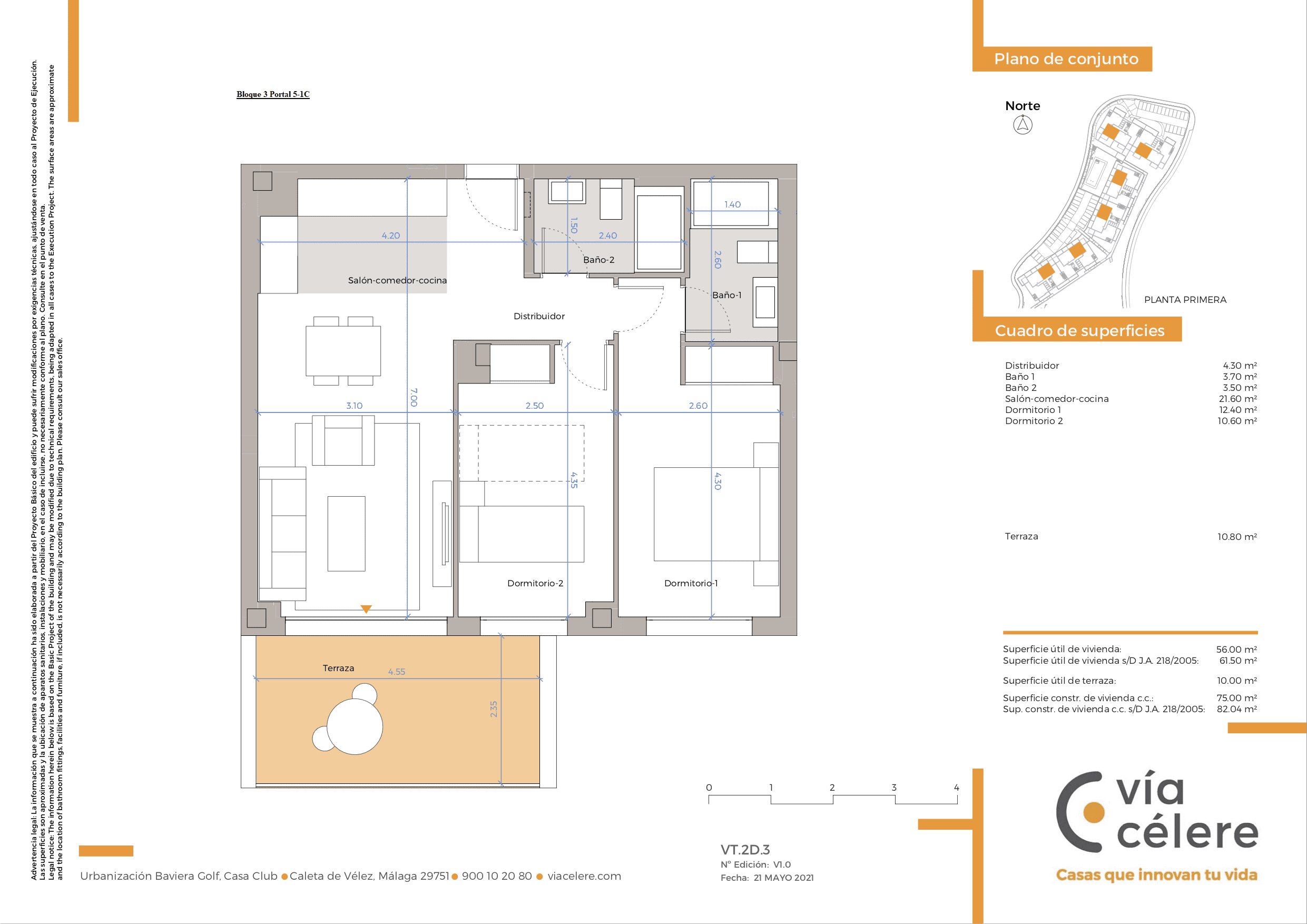A unique new-build residential complex that offers all the features of a modern residential complex, creating an ideal place to live. The complex consists of 54 apartments with 2 and 3 bedrooms, all of which have a parking space and a storage room. Air conditioning is installed. New construction with all guarantees and 82% energy savings. The common areas are undoubtedly a wealth of great benefits that will make your life much easier and more enjoyable. A unique place to enjoy with whoever you want. For this reason, the residential complex has the exclusivity of a swimming pool surrounded by green areas, a gym and a social gourmet room. We have taken care of every detail to transform this offer into your future home. For this reason, we offer you houses that are characterized by contemporary, modern and innovative design. It is located in a unique setting next to the Baviera Golf Club. The complex is only 500 m from Caleta de Vélez (marina and beach) and 6 minutes by car to the beach.
