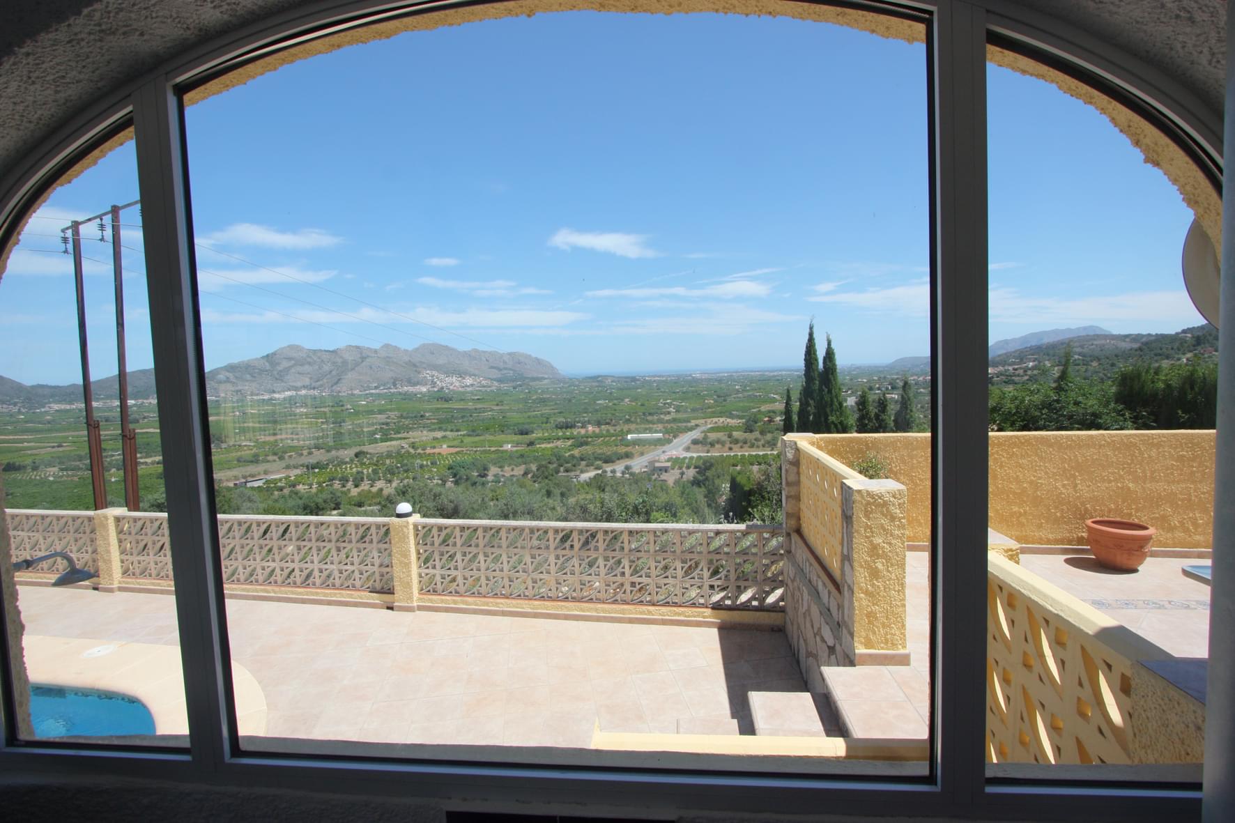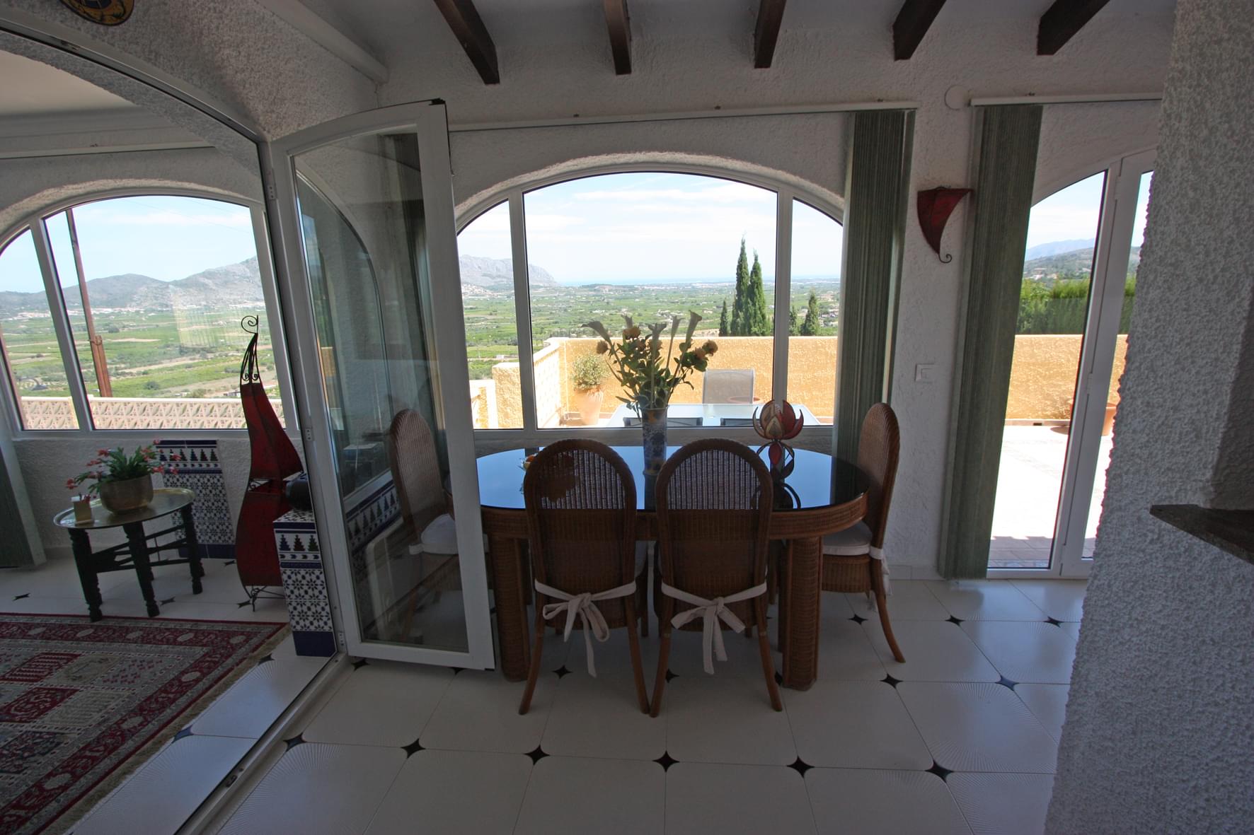 Villa with sea views for sale in Orba (Costa Blanca). The one floor villa has 203 m2 and is distributed in living / dining room, kitchen, naya, two bedrooms, a bathroom and the master bedroom with en-suite bathroom. In the house there are also extras such as air conditioning, fireplace, TV / satellite, alarm, double glazing, parking for several cars, garage for one car, outdoor shower and an 8 x 4 m. pool. The property is very close to all services such as supermarket and restaurants. The nearest beaches are 20 minutes away. The largest shopping center in the area is in Ondara about 15 minutes by car, as is the motorway to Valencia ( 1 h ) and Alicante ( 1h ). This property is ideal either as a holiday home or to live there permanently.